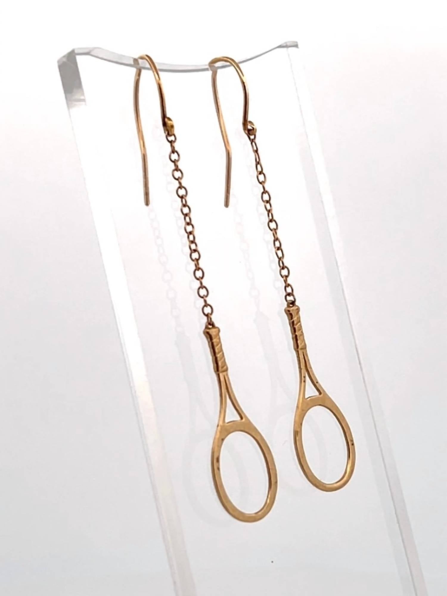 Love Love Tennis - Women's Tennis Racket Solid Gold Earrings
