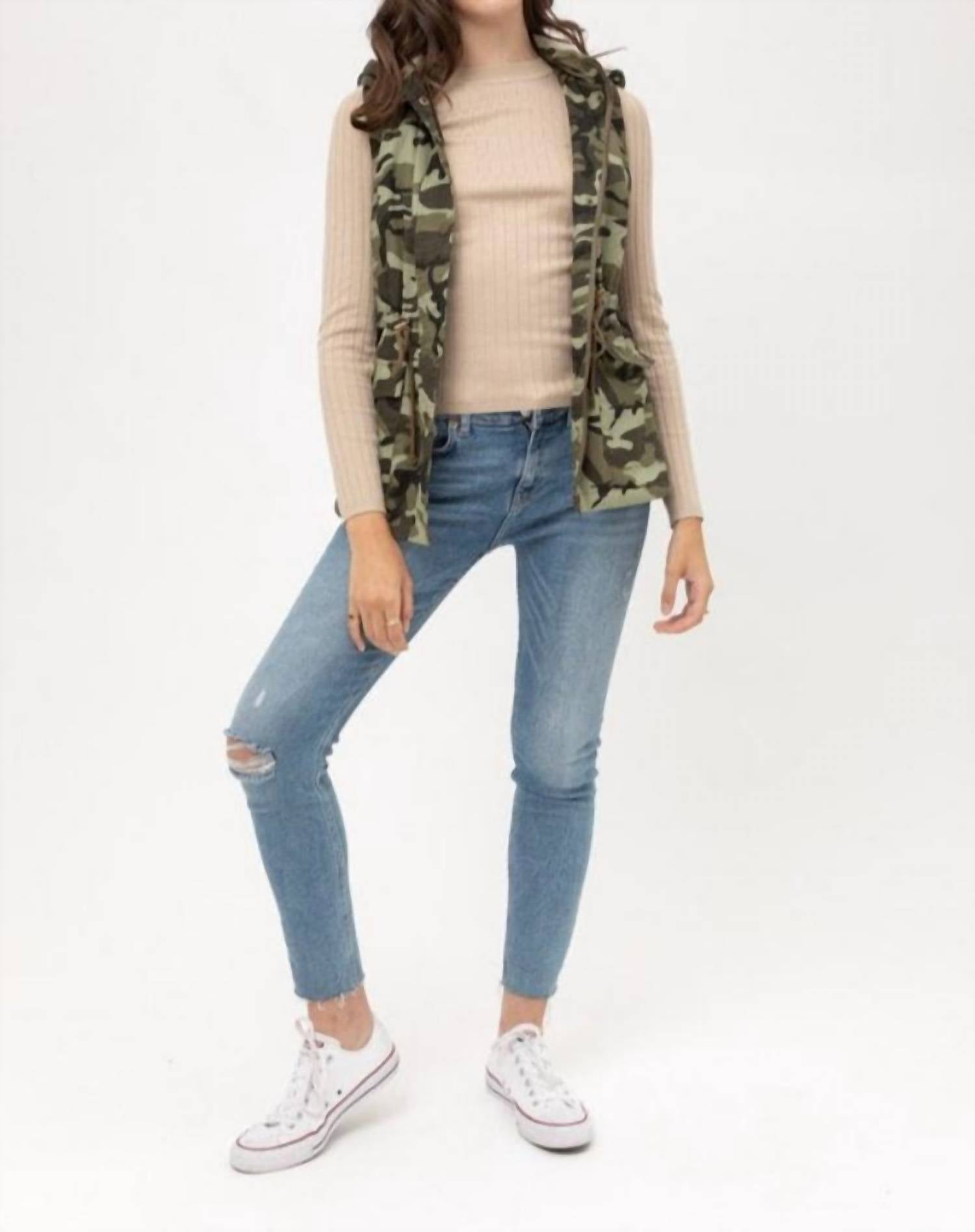 Cozy fabric, impeccable design - Meet the sweatshirt that you'll never want to take off. Brave the outdoors in style with the LOVE TREE Camo Hoodie. Designed with a hooded neckline and a secure zip closure, this sleeveless hoodie is crafted from 100% cotton with a 100% polyester lining for added comfort. Its camouflage pattern gives a nod to rugged outdoor adventures, while practical pockets enhance its utility. Perfect for summer vacations, this versatile piece keeps you comfortable during your explorations.