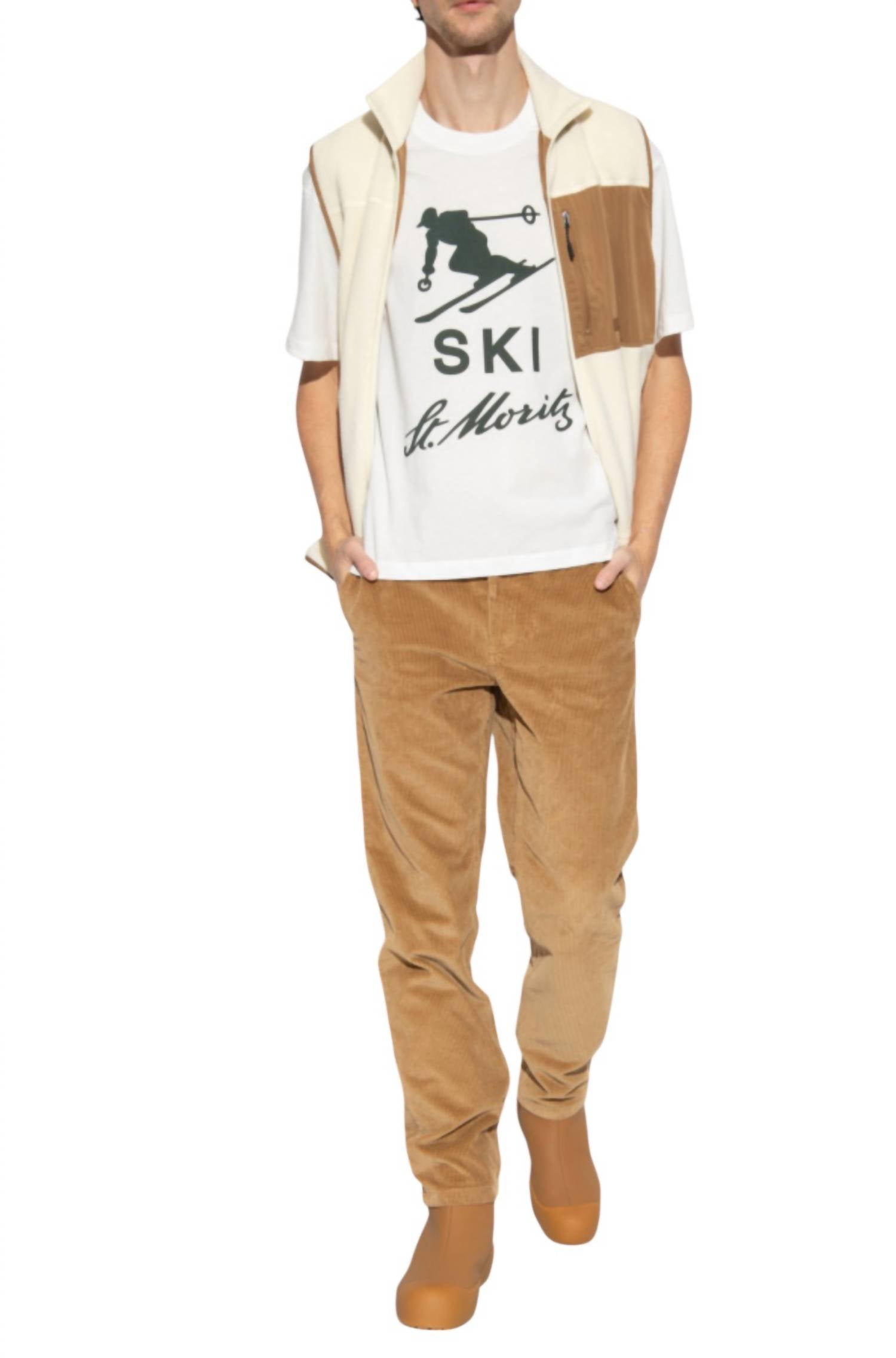 Introducing the Bally Men's Ski St. Moritz Logo Graphic T-shirt in Bone, a testament to timeless style and comfort. With its short sleeves and crafted from 100% soft, breathable cotton, this crewneck tee is designed for all-day relaxation. The vintage varsity-style design proudly displays the Ski St. Moritz logo, making it an ideal piece for adding Alpine heritage to your wardrobe. Made in Bulgaria and featuring a pull-on closure, it's easy to care for with machine wash instructions. Whether for the slopes or casual outings, this shirt is a versatile addition to any ensemble.