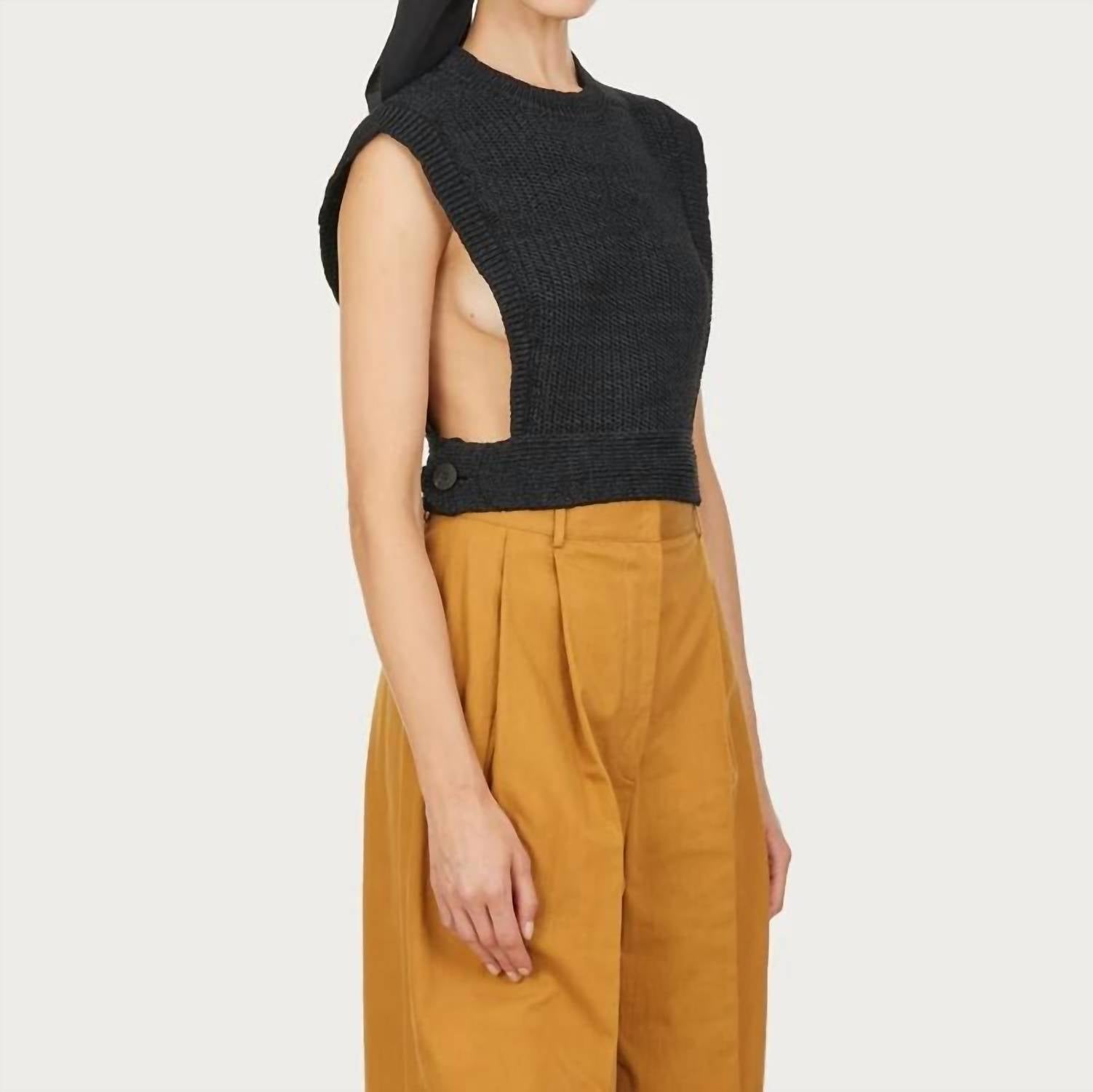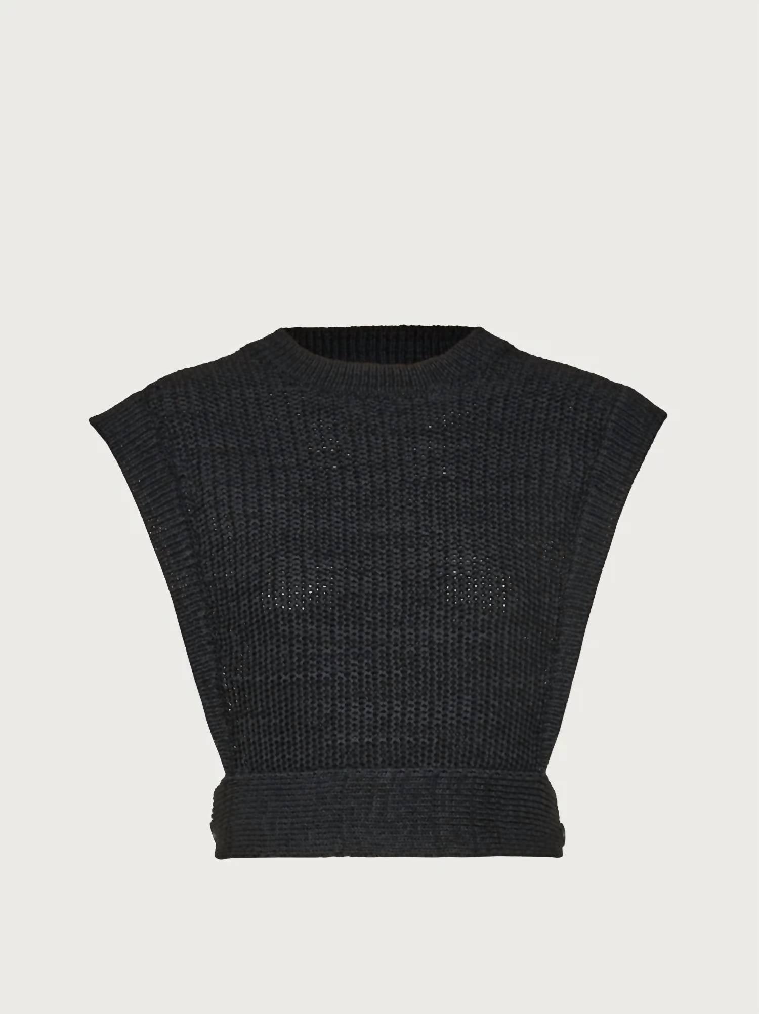 Fit, fabric and functionality. This tank top checks all the boxes. Introducing the Micro Stitch Knitted Top by Salvatore Ferragamo, a sleek and sophisticated addition to your summer wardrobe in classic black. This sleeveless design boasts a chic crewneck with textured detailing and features two panels open at the sides for a modern, revealing flair. Composition: 60% Polyester, 29% Wool, 11% Polyamide. Made in Italy with a pull-on closure, this minimalist piece is perfect for a stylish vacation. Model measurements: Height 5'11"/180 cm, Bust 31½"/80 cm, Waist 24½"/62 cm, Hips 34½"/88 cm.