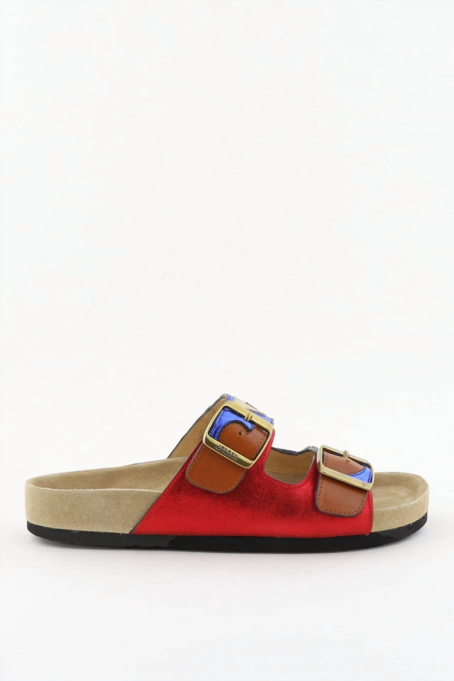 This sandal will take you from brunch to dinner and everything in between. Discover the Women's Lelik Sandals by Isabel Marant, a stylish option for the spring season. Crafted from printed leather, metallic leather, and suede, these multicolor sandals showcase an open toe design. With a flat heel height of 1" and under, they provide a regular fit for optimum comfort.