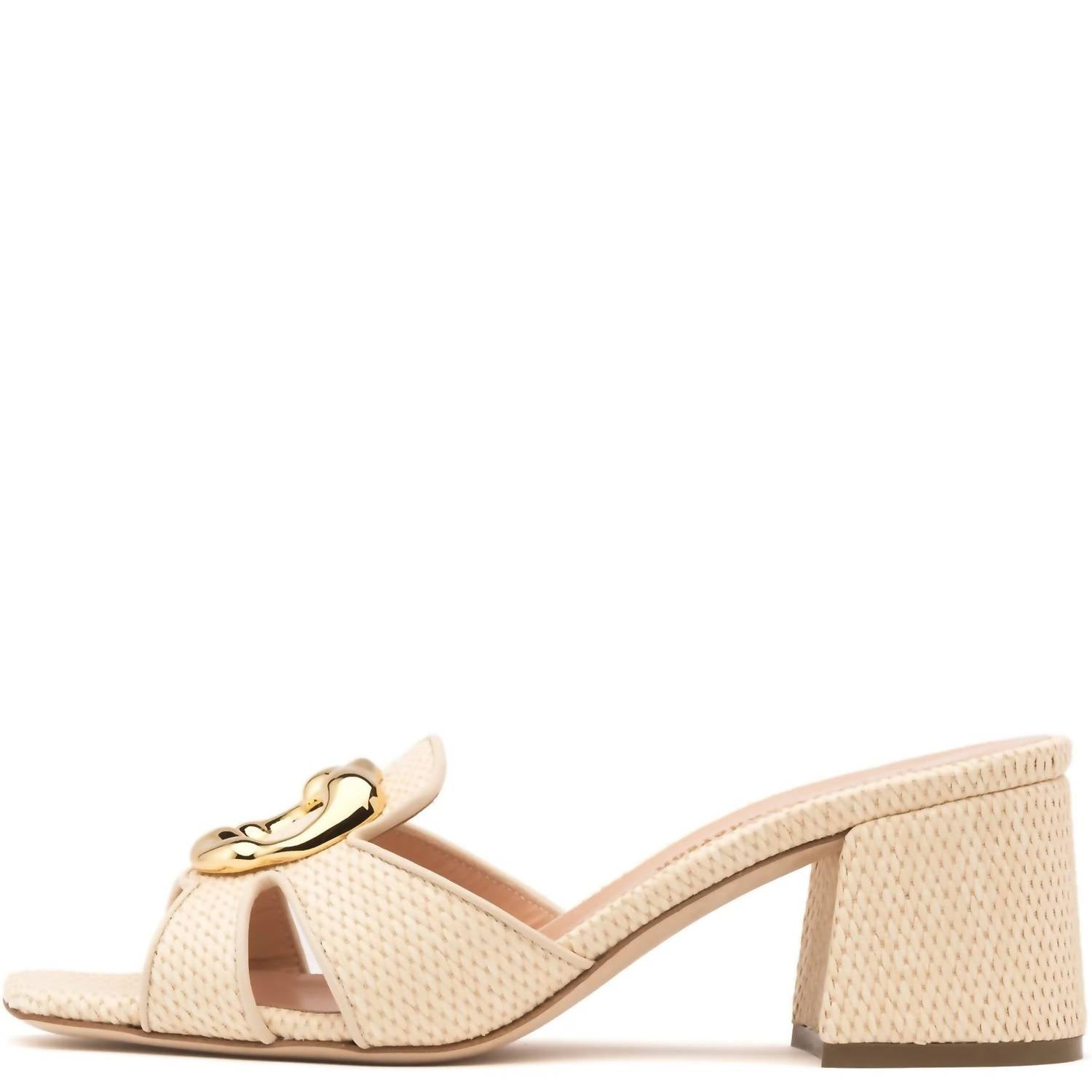 This sandal will take you from brunch to dinner and everything in between. The Women's Cicely Raffia Pebble Mule by Rupert Sanderson in Natural is a refined yet relaxed sandal ideal for summer and vacation occasions. Handmade in Italy, this mule features a sophisticated textured raffia upper, a modern squared toe, and a unique cromato water pebble accessory inspired by vintage glamour. With a comfortable 60mm (2.36 inches) block heel and an open-toe design, it pairs seamlessly with both denim and dresses.