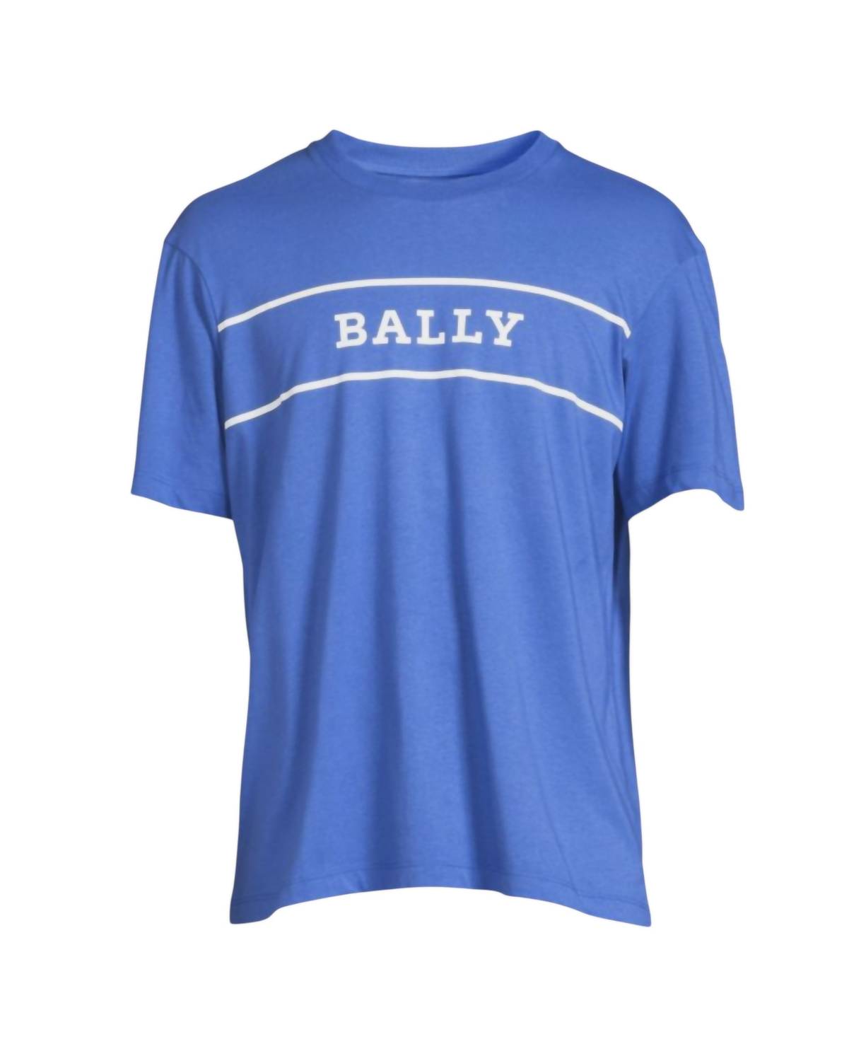 Introducing the Bally Men's Printed Logo Short Sleeve T-shirt, a refined addition to your casual collection. This t-shirt is crafted in a soft blue 100% cotton material, featuring a classic crewneck and a striking white Bally logo on the front. Designed with short sleeves, it is perfect for both weekend outings and laid-back office wear. Originating from Madagascar, this pull-on tee is easy to maintain with machine wash instructions.