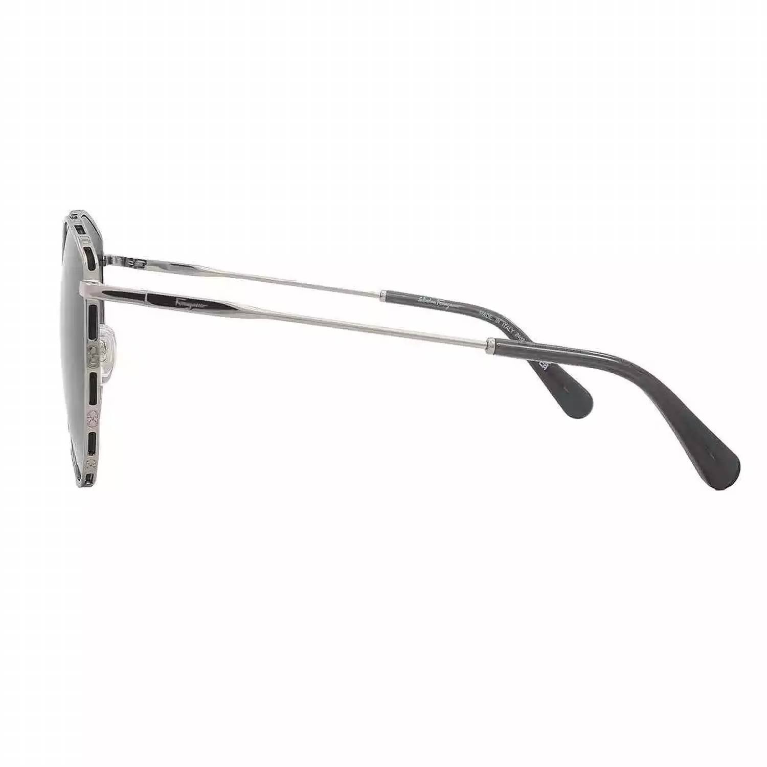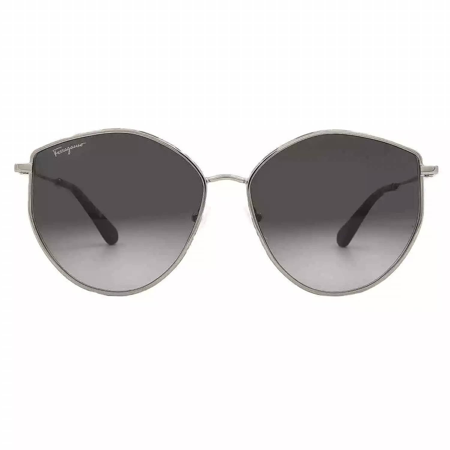 Introducing the WOMEN'S SF264S SUNGLASSES by Salvatore Ferragamo, a chic accessory blending style and protection. These cat eye sunglasses feature an irregular shape with a lens width of 60 mm, a bridge of 15 mm, and arm length of 140 mm. Designed in a full-rim frame made of metal with a radiant rose gold/grey finish, they boast grey gradient lenses offering 100% UV protection. Ideal for those seeking non-polarized, elegant eyewear with a luxurious edge.