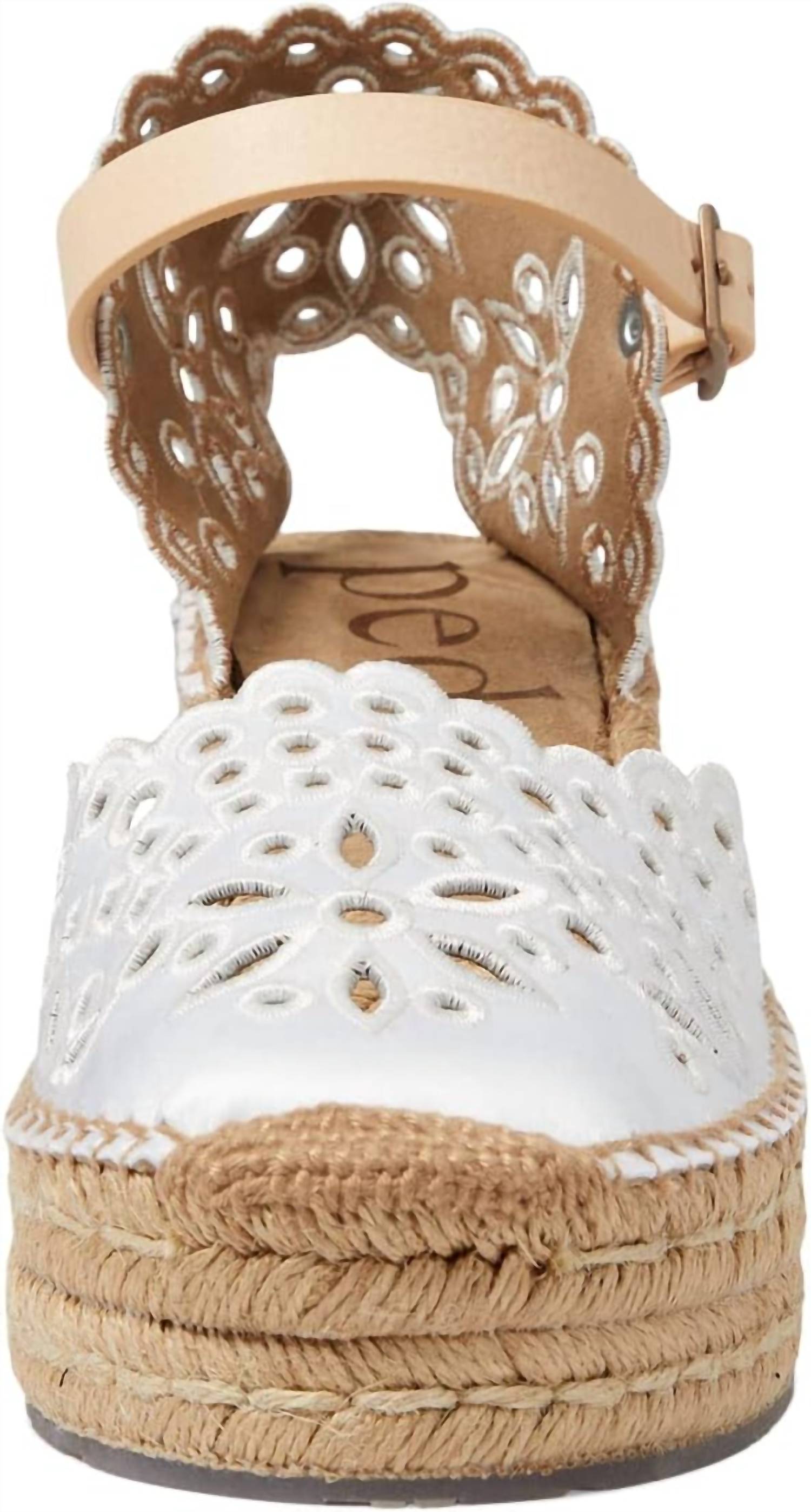 Flowy dresses, cropped pants, and even jumpsuits... this sandal works with them all! Step up your style game with the Women's Oletta Espadrille by Pedro Garcia, a stunning addition to any boho chic ensemble. These sandals feature a sleek ankle strap with an adjustable buckle and a round toe design, all set atop a comfortable wedge espadrille heel. Crafted in Spain, they boast eyelet satin detailing with a leather inner sole and rubber outsole for added durability. Perfect for a dinner party or Thanksgiving gathering, these sandals in Meringue Satin hue are the ideal spring accessory.