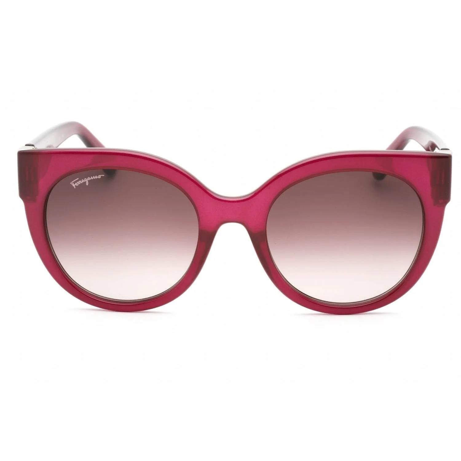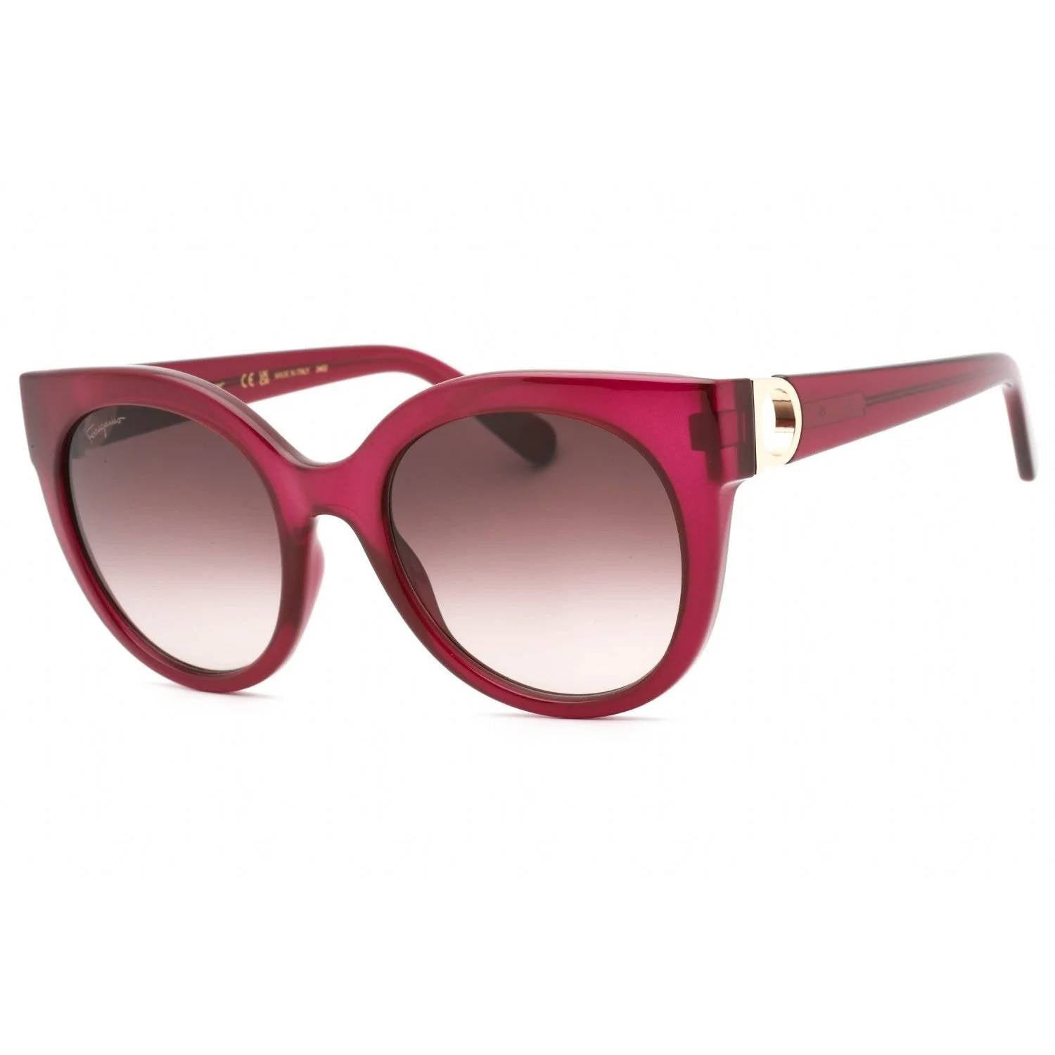Discover the epitome of sophisticated eyewear with the Women's SF1031S Sunglasses by Salvatore Ferragamo. These cat eye sunglasses feature a chic frame in crystal purple, complemented by mauve gradient lenses. The frames are crafted from quality plastic, ensuring durability and style. Offering UV400 protection, they include a 53 mm lens width, 20 mm bridge size, and 140 mm temple length for a perfect fit.
