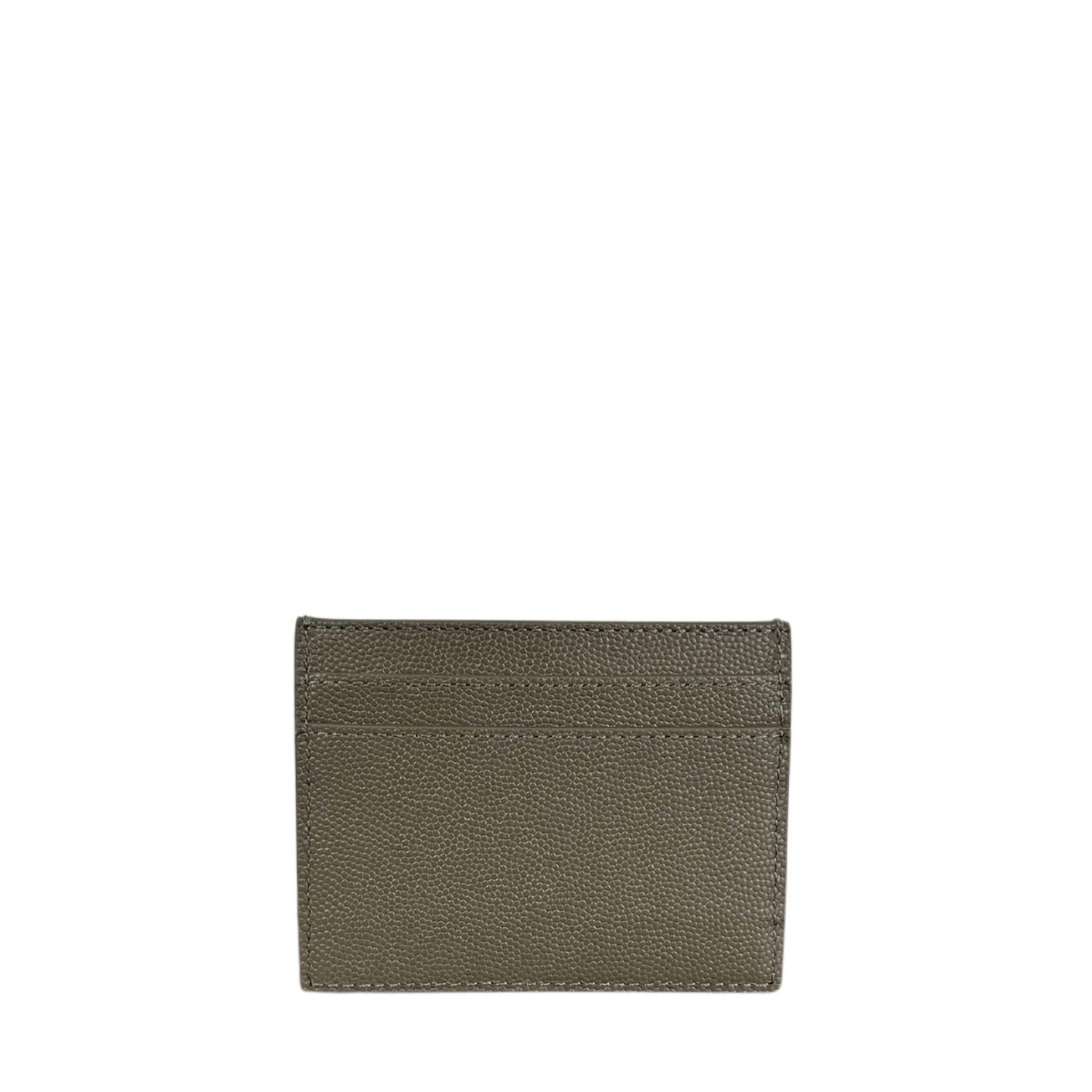 Elevate your accessory game with this stylish must-have. Not only is it functional by keeping everything organized, but it's classic and timeless in its design. The SAINT LAURENT PRELOVED Paris Card Case offers a sophisticated touch with its grey grained calfskin exterior. Designed with practicality in mind, it features four exterior card slots and a central slot compartment, perfect for organizing your essentials. This stylish accessory measures 4 inches in width and 3 inches in height, making it compact yet functional. Note: Includes a certificate of authenticity. Condition: Excellent.