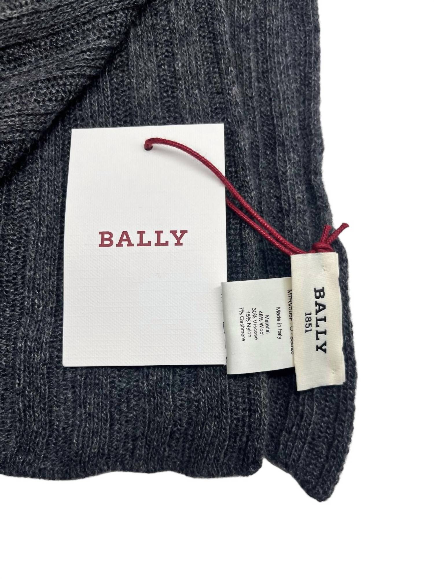 Wrap yourself in sophistication with the Bally Men's Rib-Knit Anthracite Scarf, designed to offer both luxury and warmth. Expertly crafted in Italy from a premium blend of 48% wool, 30% viscose, 15% nylon, and 7% cashmere, this scarf combines softness and durability. Its rib-knit design and subtle Bally logo detail add a timeless, designer touch. With its generous dimensions of 75 inches by 10.5 inches, this scarf offers ample coverage and endless styling options.