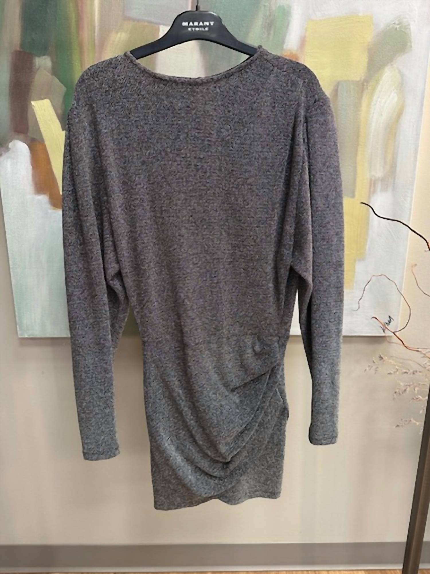 The kind of easy and flattering dress you'll be reaching for all season long. Shimmery long sleeve dress, fitted with ruching on one side from waist down.