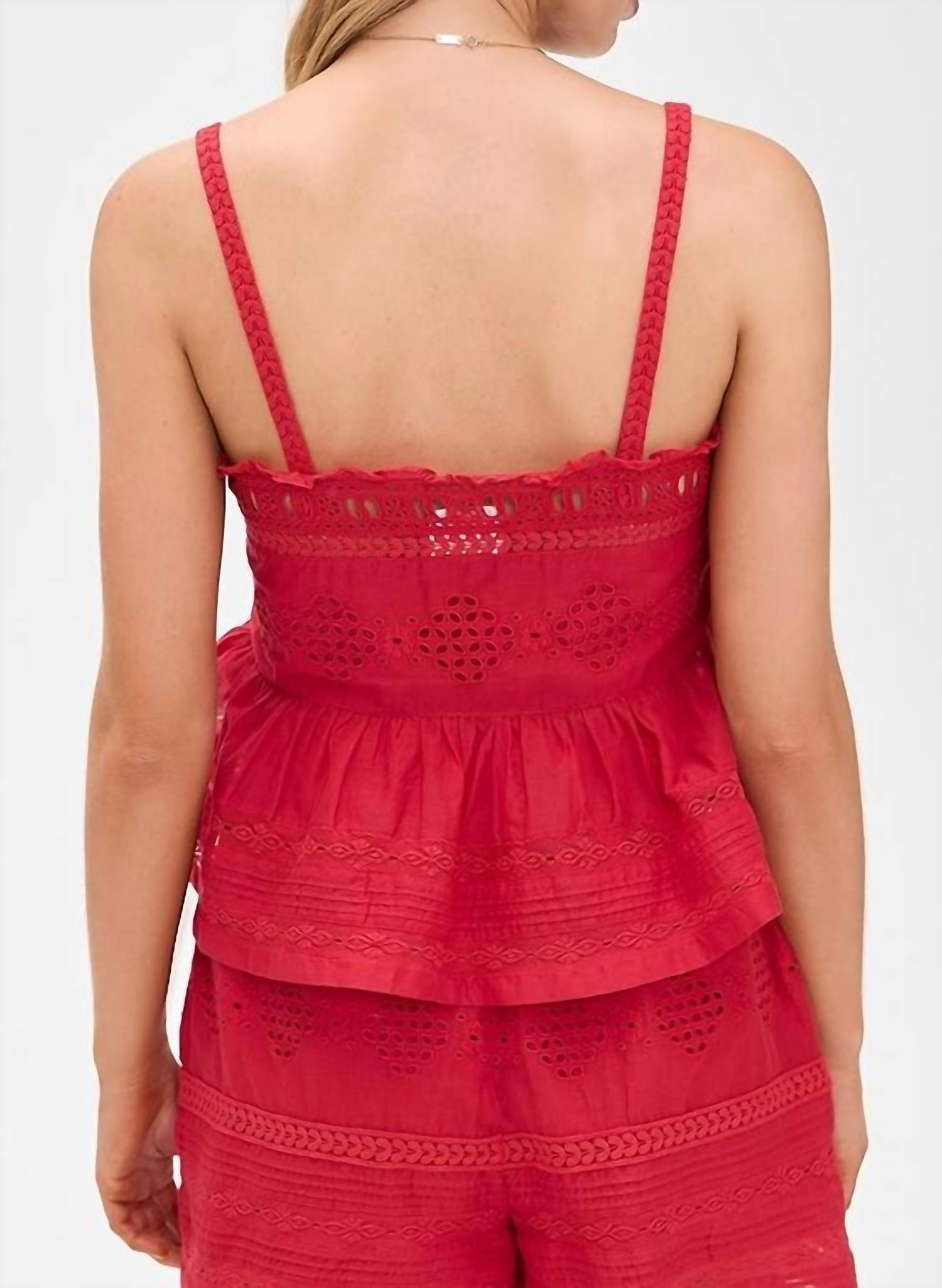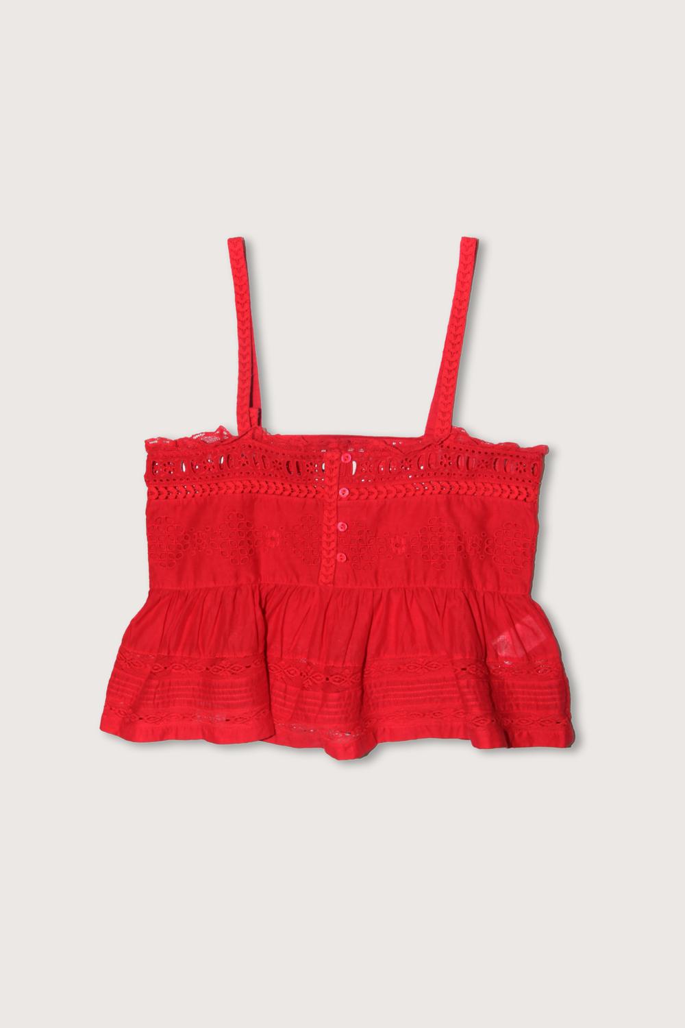 Tuck this cami into your favorite pair of jeans for a casual yet polished look. Elevate your wardrobe with the Denys Eyelet Cami Top by ISABEL MARANT, a chic addition that exudes summer vibes in vibrant red. Designed with delicate spaghetti straps and a stylish squareneck, this piece is crafted from pure cotton, ensuring breathability and comfort. Closure: Pull on. Care instructions recommend machine wash and line dry for lasting quality.