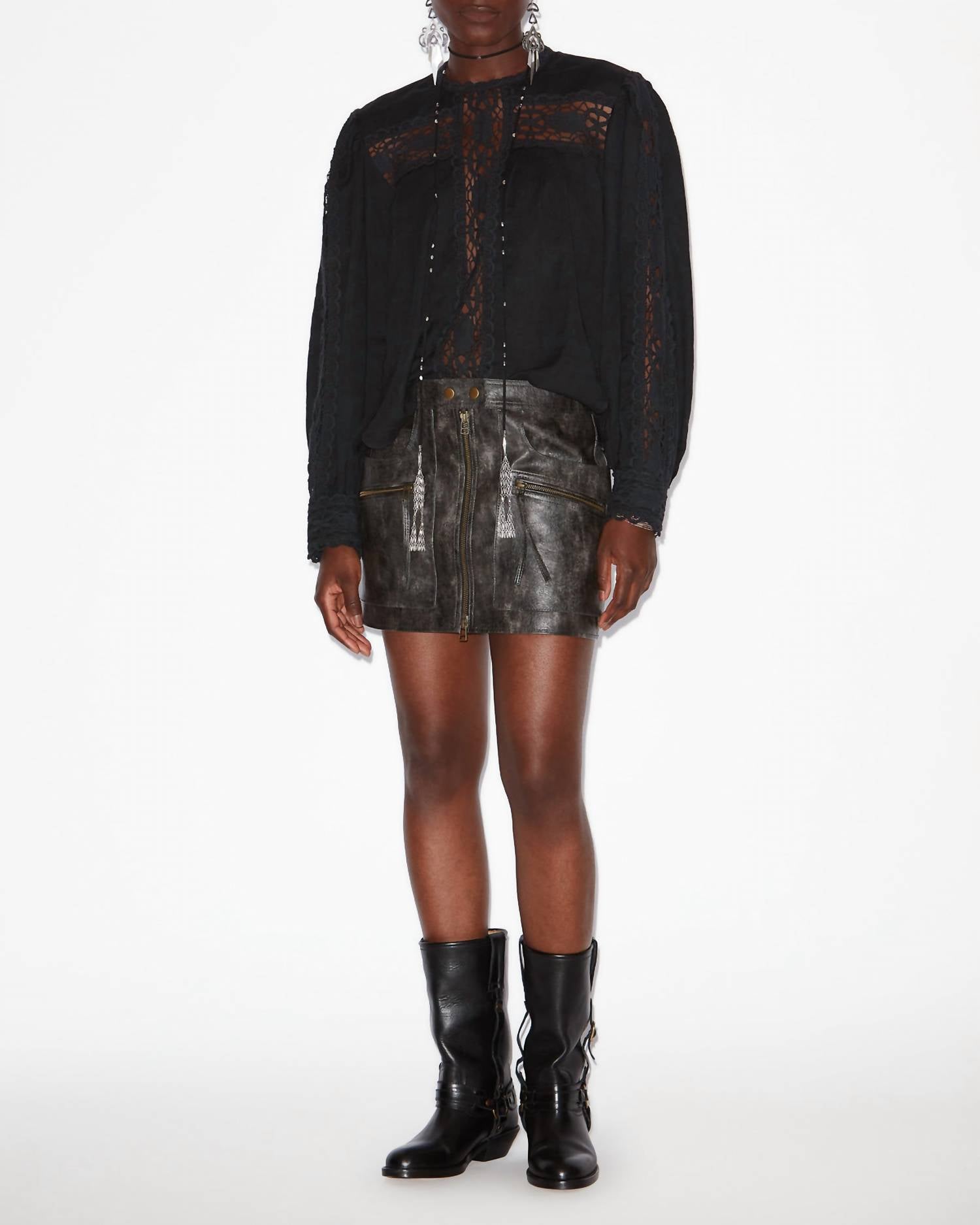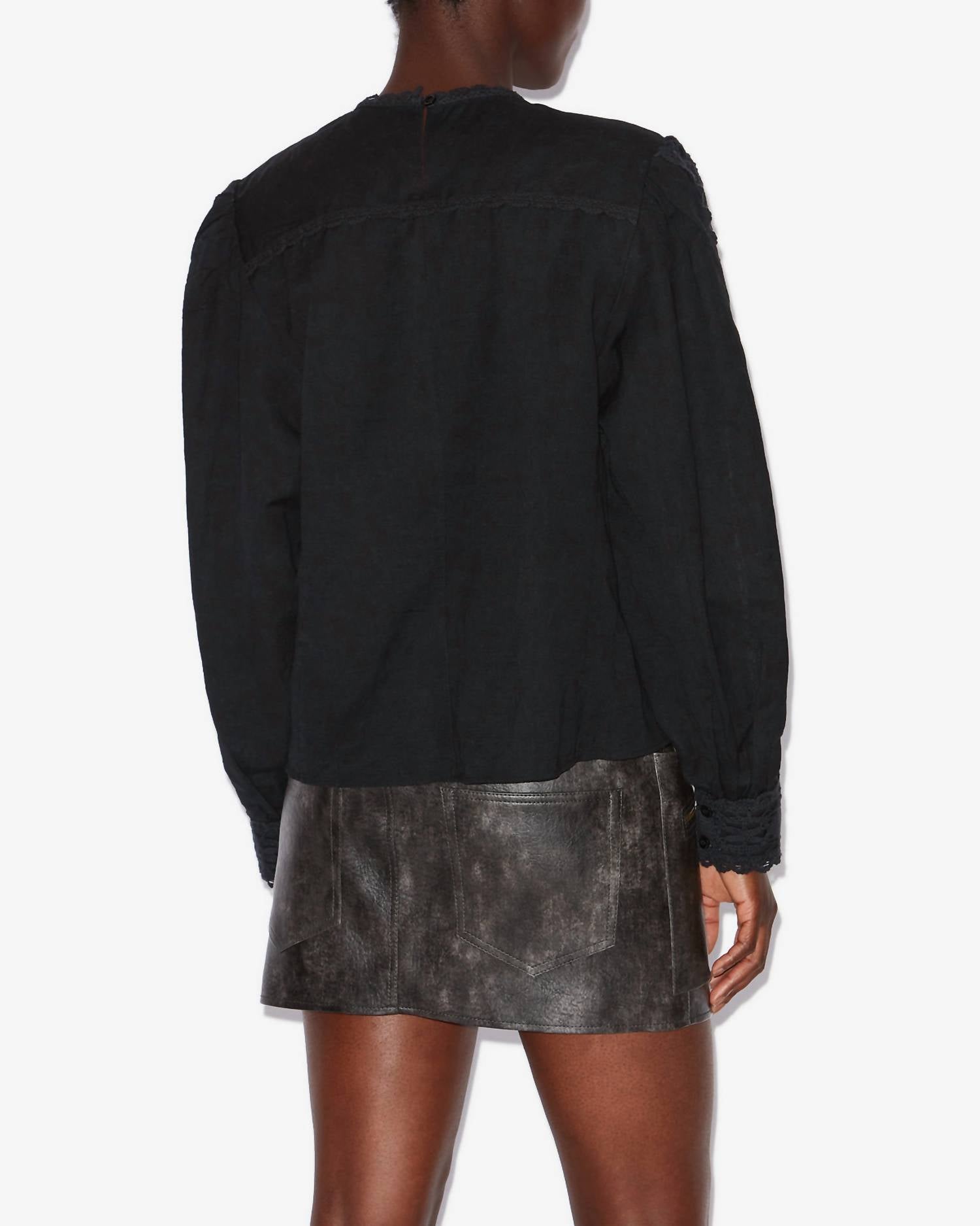 A timeless blouse that will never go out of style. This blouse is crafted from a breathable blend of 55% linen and 45% cotton, offering a soft, natural feel with elegant detailing. It features a round neckline, gathered shoulders, and long sleeves with straight buttoned cuffs. The pleated front and flared cut create a graceful silhouette, while tone-on-tone and openwork lace add subtle texture and charm. Finished with side slits and a buttoned slit at the back, this piece combines classic elements with modern refinement.