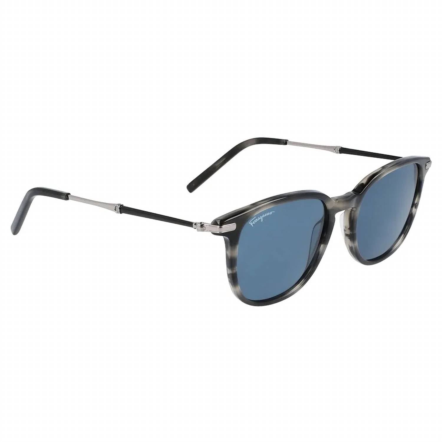 Experience timeless elegance with MEN'S SF1015S SUNGLASSES by Salvatore Ferragamo, designed to elevate any outfit. Crafted with a distinctive striped grey dial and paired with a blue glass, these round and oval sunglasses blend sophistication with practicality. The bracelet material is premium acetate, ensuring durability and high-quality craftsmanship. Dimensions are meticulously tailored with a lens width of 52 mm, bridge width of 19 mm, and temple length of 150 mm, all enhanced by a UV filter 3 for optimal protection. Made in the renowned tradition of Salvatore Ferragamo, these sunglasses embody luxury and functional style.