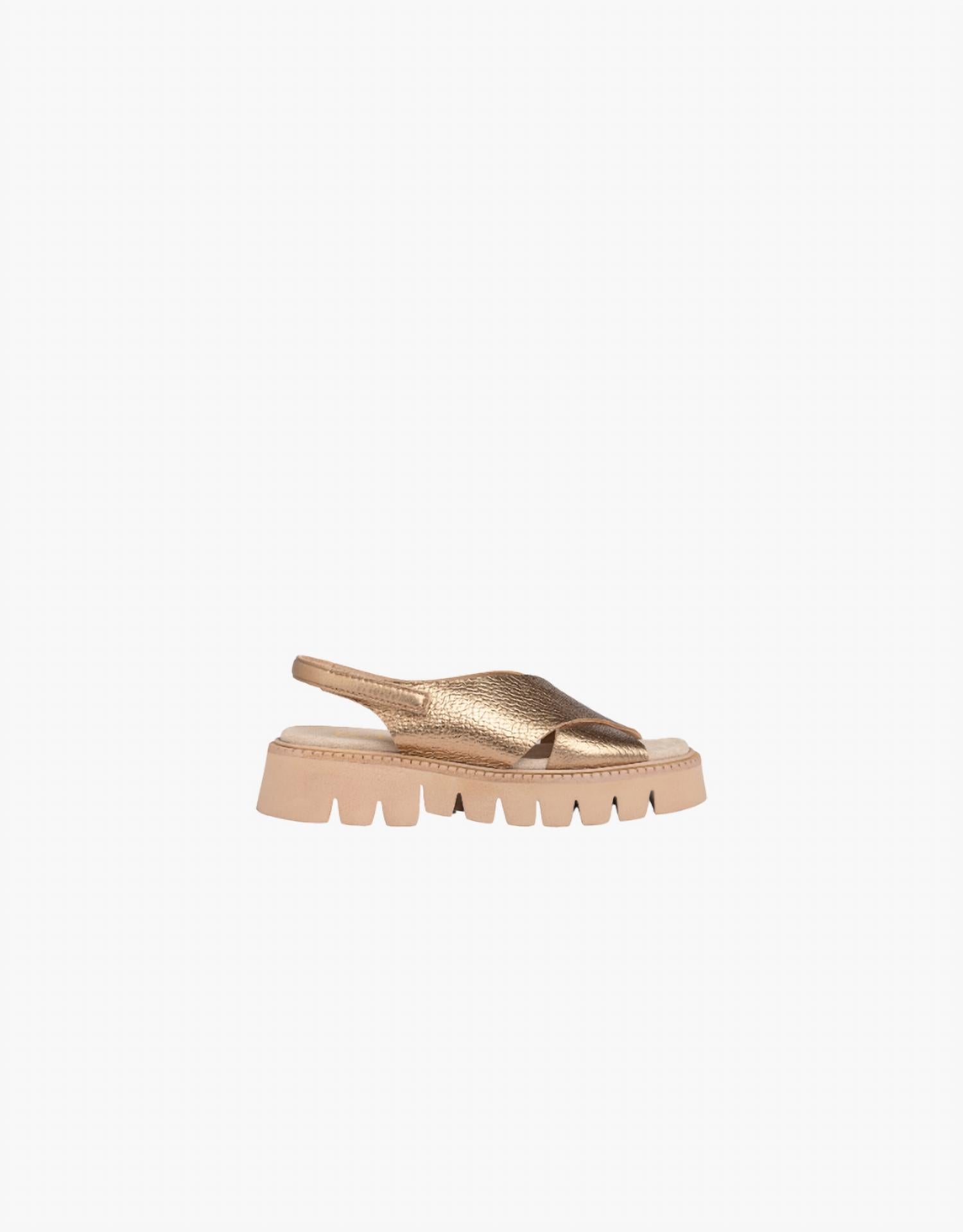Classicly cute and all-day-wearable. We love this sandal. Elevate your ensemble with the Women's Reme Sandals by Pedro Garcia, showcasing an open toe design in the elegant Cava Cervo Lame color. Crafted with unlined raw edge pebble grain cowhide featuring a sophisticated metallic finish, this sandal ensures both comfort and style. It offers a low heel height of 1.3 inches and is made in Spain, providing a touch of European craftsmanship. The Velcro closure offers easy wearability, making it a staple for any wardrobe.