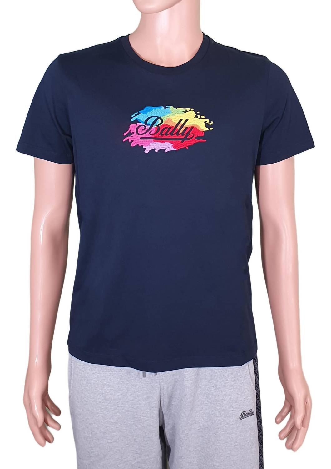 This classic, short sleeve tee will be your go-to staple this season and beyond. Embrace effortless style with the Bally Unisex Short Sleeve Logo T-shirt, a casual piece crafted from 100% cotton. With short sleeves and a relaxed fit, this navy blue tee features a colorful embroidered graphic of the iconic Bally logo, making it perfect for sparking conversations. Originating from Portugal, this tee offers a pull-on closure and a classic crewneck. For easy maintenance, simply machine wash this garment.