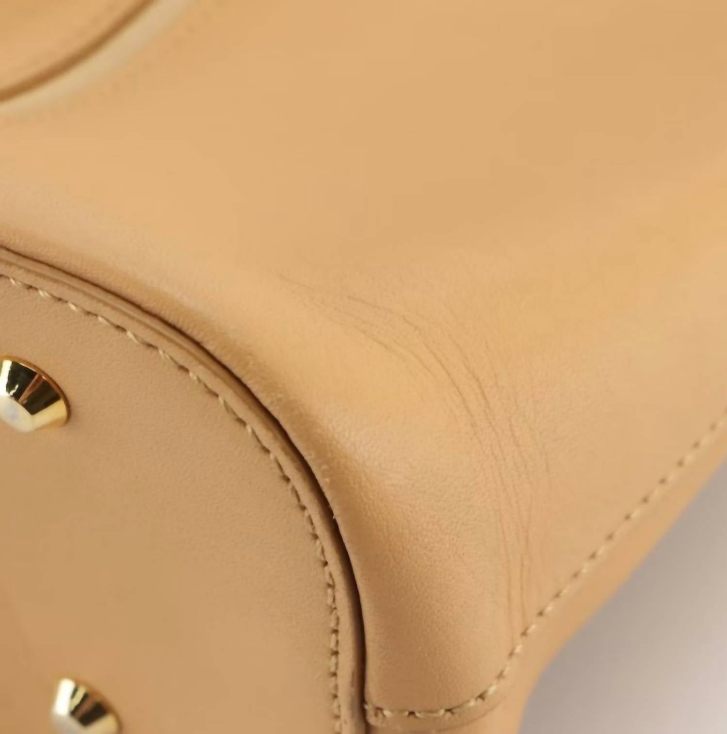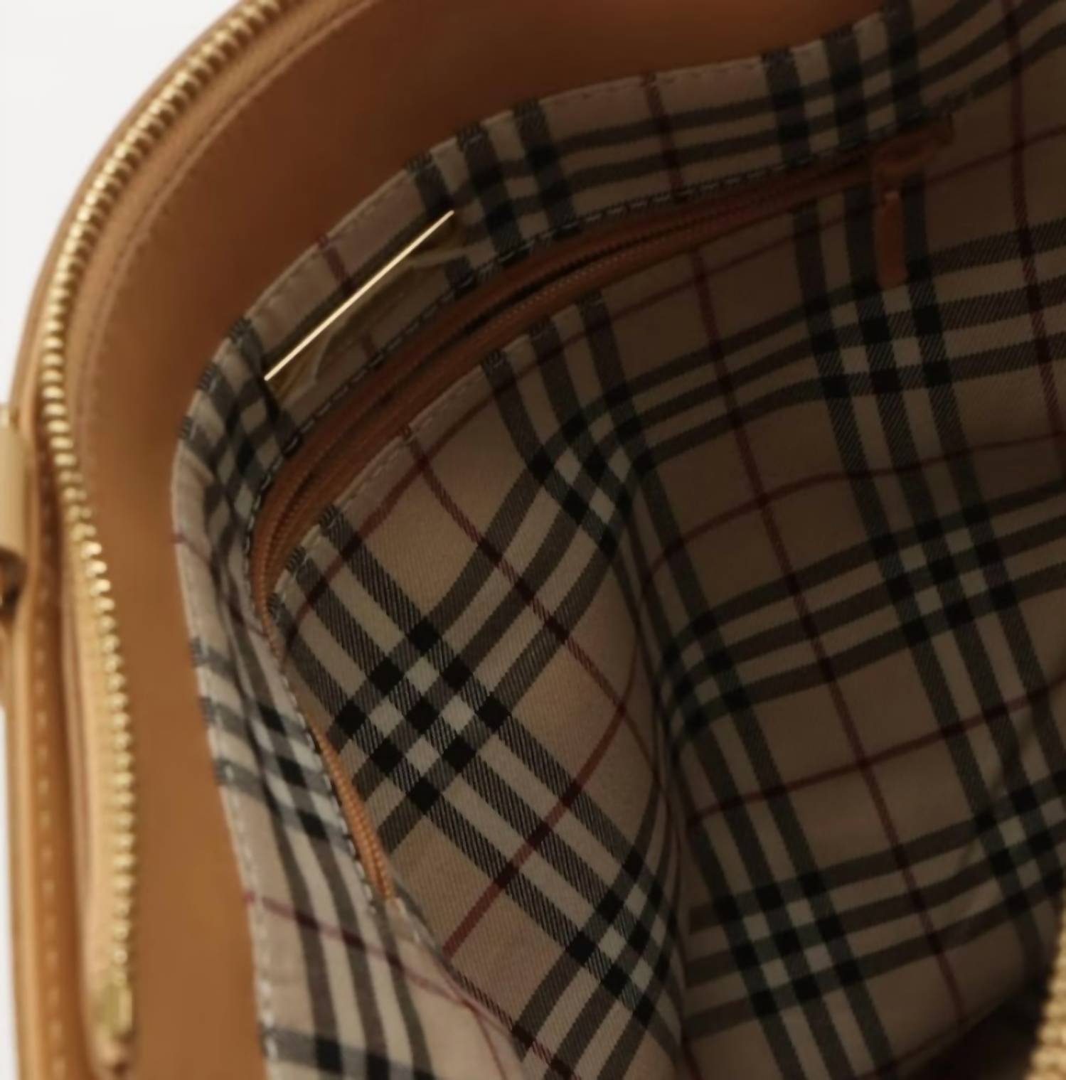 Introducing the Pre-loved Vertical Leather Shoulder Bag by Burberry, a sophisticated accessory in elegant tan. Crafted from premium leather, this shoulder bag offers a luxurious look and feel. Its vertical design makes it a stylish and functional choice for any occasion. Add a touch of timeless elegance to your ensemble with this exquisite piece. Condition: Very Good.