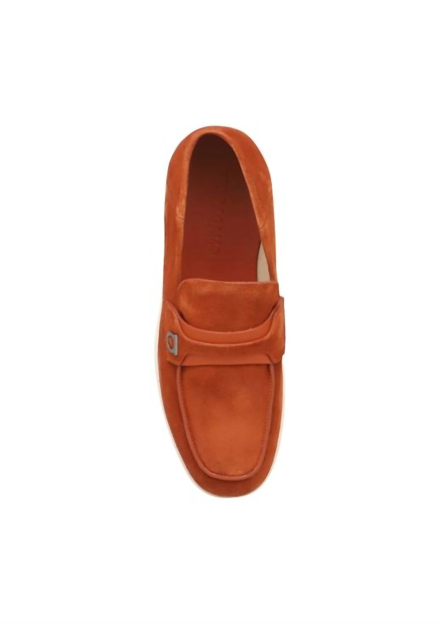 Experience the luxury of the Men's Flat Leather Loafer by Salvatore Ferragamo, crafted with premium Italian leather for a casual yet sophisticated look. This brown loafer embraces a minimalist trend with its slip-on styling and round toe design, perfectly suited for spring travel and Thanksgiving gatherings. Heel Style: Flat (1" & Under). Ideal for the fashion-forward adult man seeking a regular fit with a refined finish.