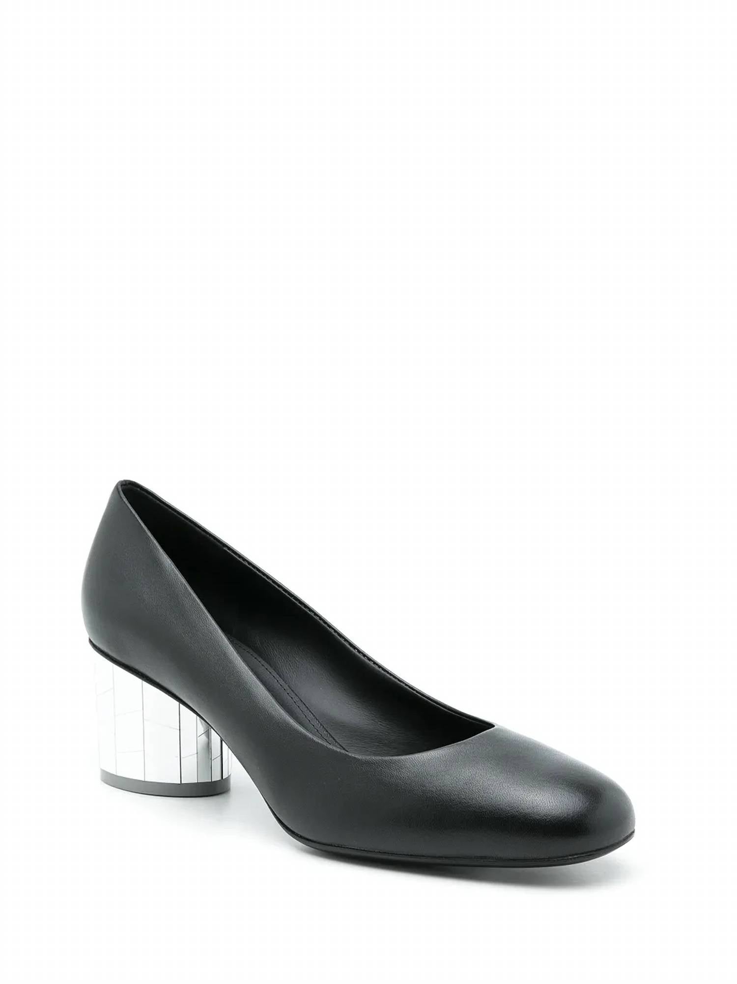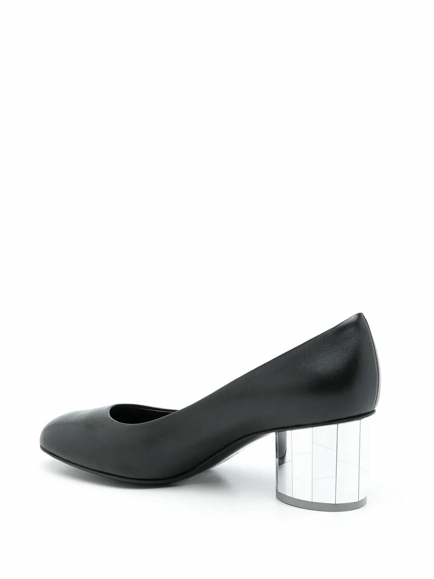 Don't be deceived, these heels are comfy as can be. Introducing the Women's Farrah Slip-on Leather Pumps by Salvatore Ferragamo, designed with a sophisticated round toe for a touch of elegance. Composed entirely of luxurious lamb skin, these Italian-made shoes feature a distinctive block heel measuring 2.16 inches, crafted with laser technology for a geometric inlay and a unique cracked effect. This spring season staple in classic black is perfect for a quiet luxury look at a dinner party or New Year's Eve celebration. The slip-on style ensures easy wear and elevates any ensemble effortlessly.