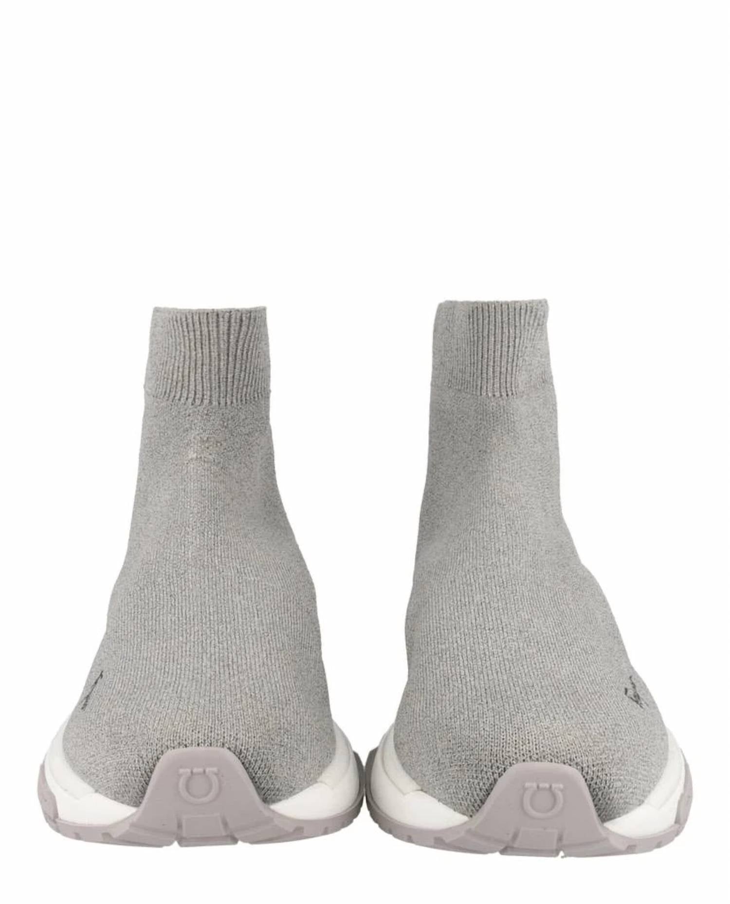 Get your daily steps in with these adorable sneakers. Elevate your wardrobe with the Women's Ninette High-top Sock Sneakers by Salvatore Ferragamo, perfect for modern travelers seeking minimalist style. These sneakers feature an almond toe and metallic threading throughout, with a Gancini detail at the toe cap and silver-tone metallic textured heel detail. They offer a comfortable heel height of 1.44 inches and a platform of 0.81 inches, crafted with an upper composition of 100% Polyester and a lower of 100% Rubber. Made in Italy, they pull on effortlessly and are easy to maintain with spot cleaning.