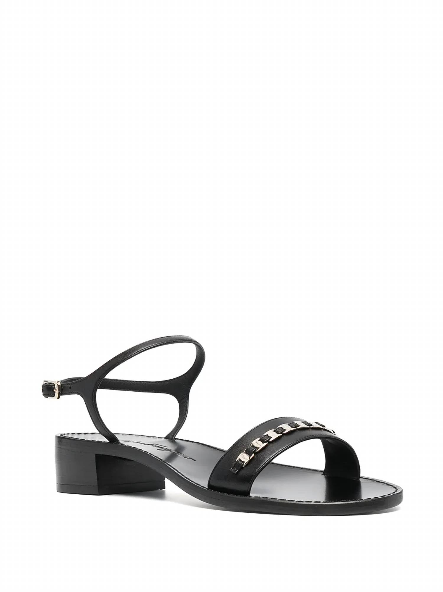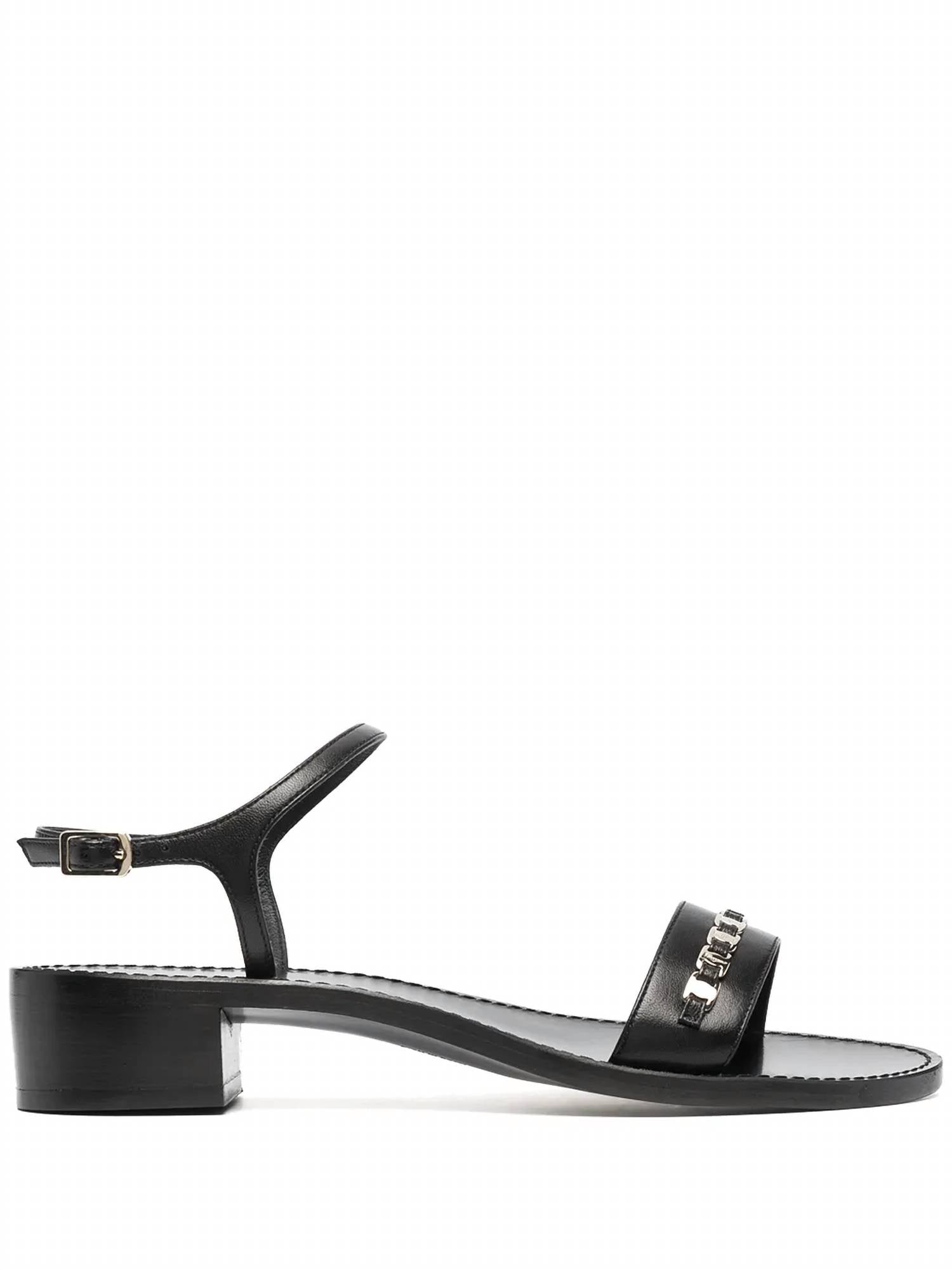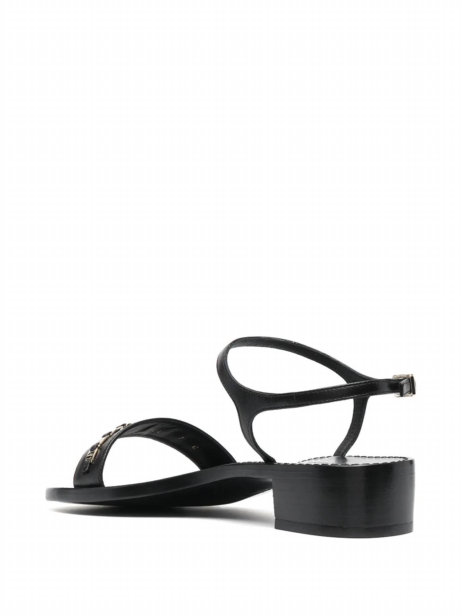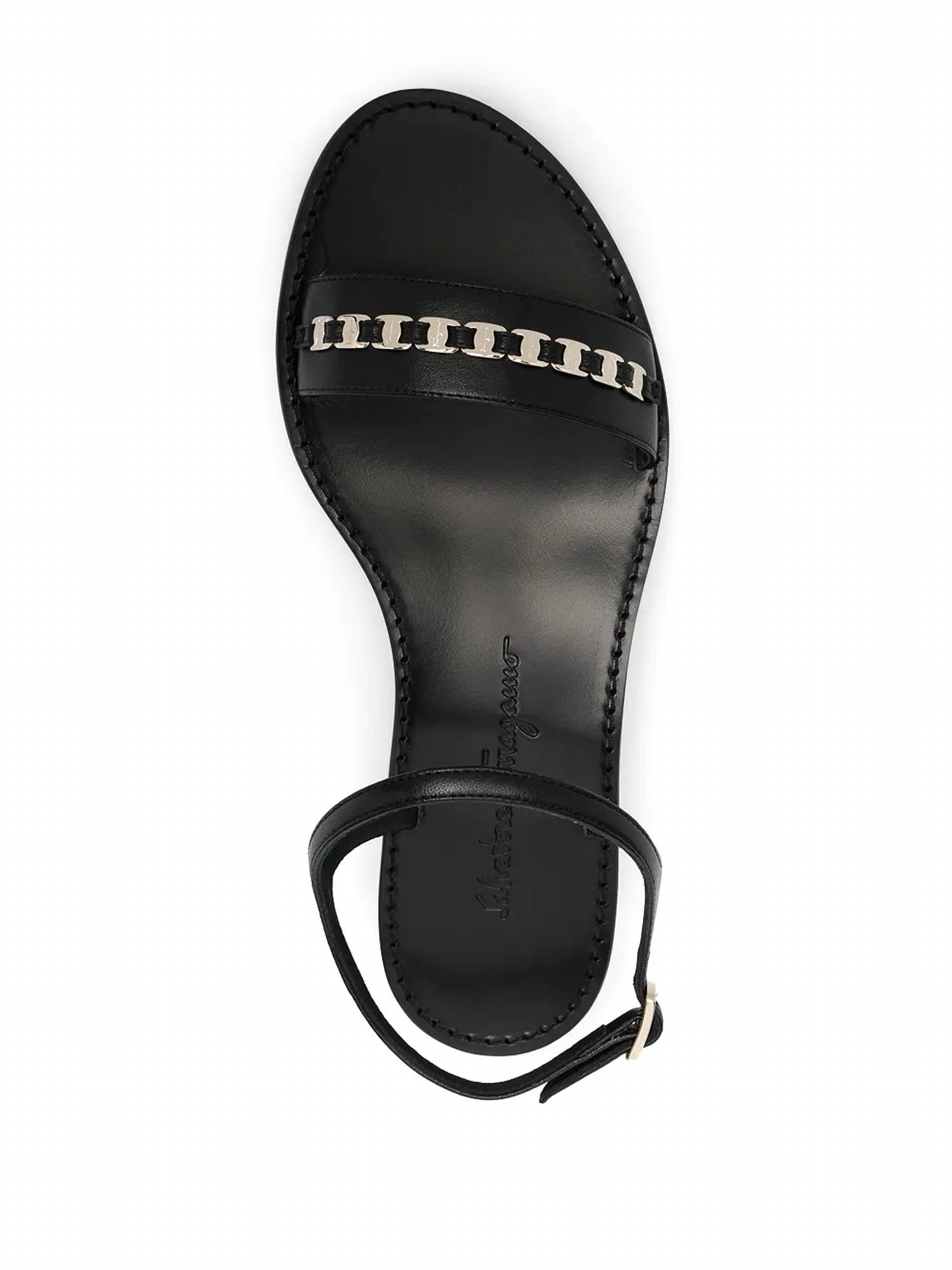 This sandal will take you from brunch to dinner and everything in between. The Salvatore Ferragamo Women's Tiny Vara Bow Appliqué Trim Sandals are a chic addition to any footwear collection. Expertly crafted from smooth black leather, these sandals feature a stylish round toe and a classic block heel measuring 1.57 inches, perfect for complementing your look from springtime brunches to New Year's Eve parties. Made in Italy, they embody the 90s fashion trend while offering comfort and elegance for any dinner party occasion. Composition: Leather outer, lining, and sole.