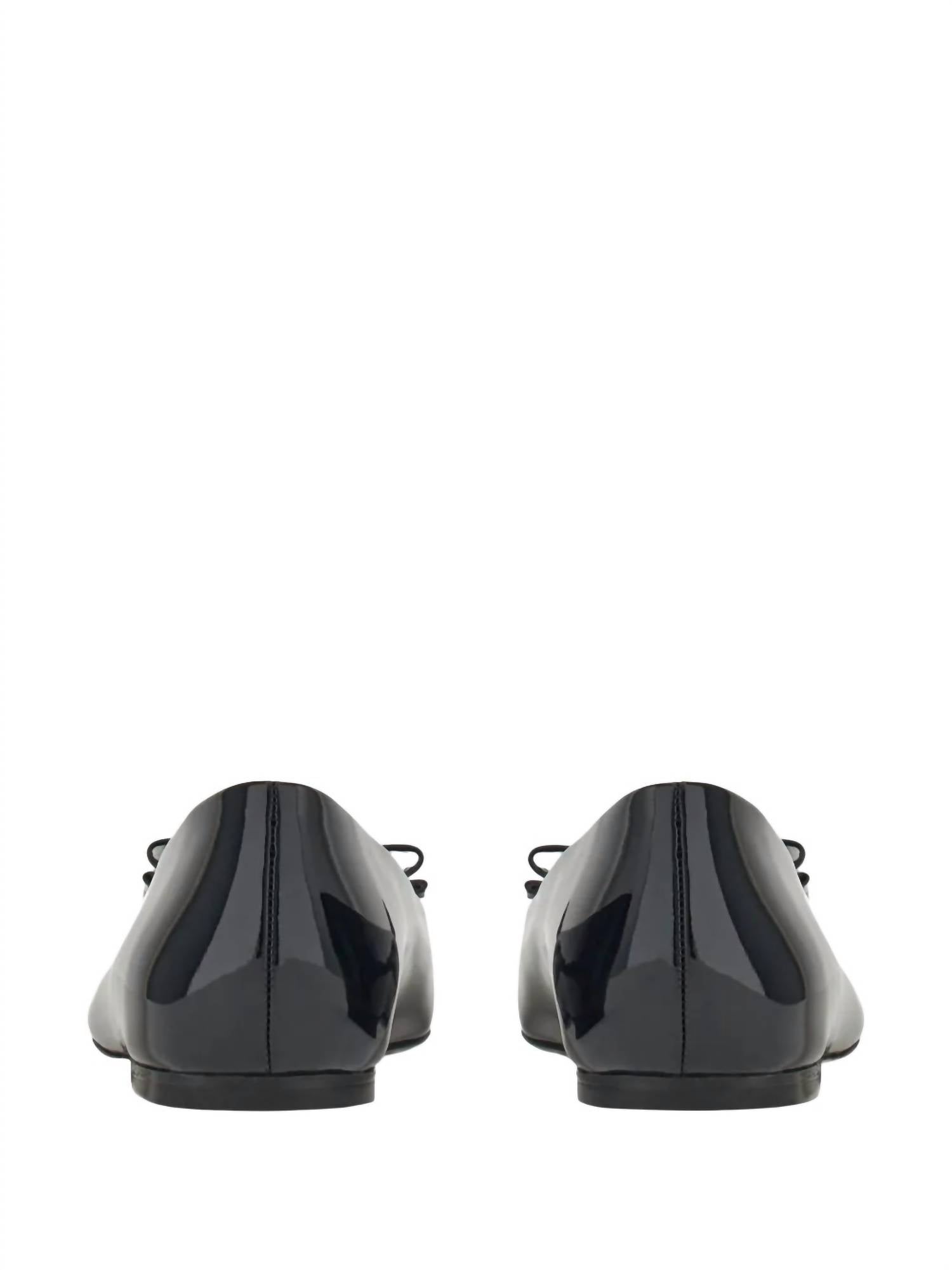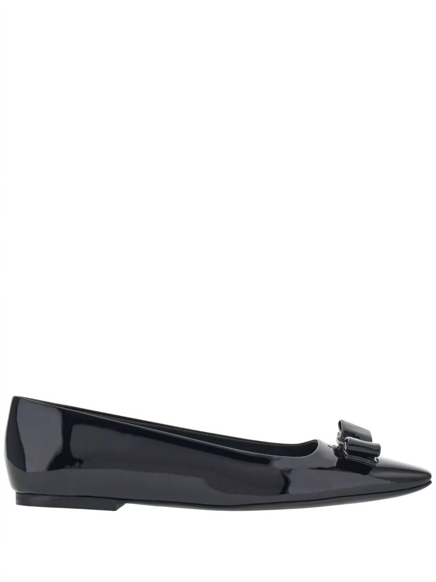 A classic loafer that is both comfortable and polished. Elevate your style with the Women's Vara Bow Ballerina Shoes by Salvatore Ferragamo, expertly crafted in Italy. These black flats feature a striking patent goatskin finish, adorned with an oversized bow detail for a touch of elegance. The slip-on style and square toe offer easy, comfortable wear, complemented by a branded insole and flat sole for all-day comfort. Composition includes 100% Patent Calf Leather outer and 100% Goat Skin lining, making these perfect for dinner parties or any spring occasion.