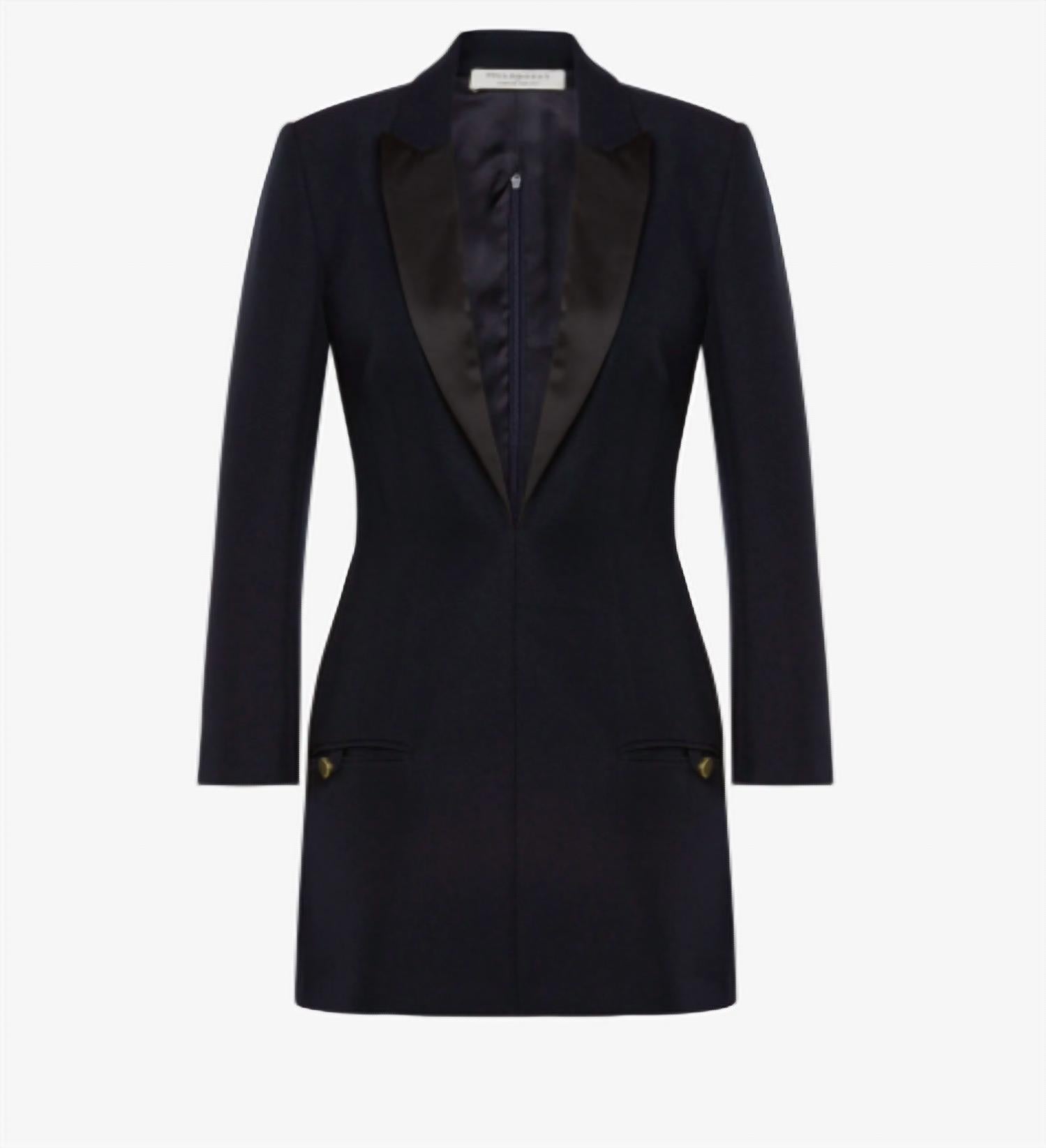 The kind of easy and flattering dress you'll be reaching for all season long. Elevate your style with the Grain De Poudre Minidress by Philosophy di Lorenzo Serafini, perfect for any occasion in striking dark blue. This elegant mini features long sleeves and a sensuous V-neckline with satin lapels that offer a chic shiny-opaque contrast. Crafted from premium polyester, its silhouette flatters your figure while providing both comfort and sophistication. Ideal for those who appreciate subtle luxury with functional elegance, as this dress also includes convenient pockets.