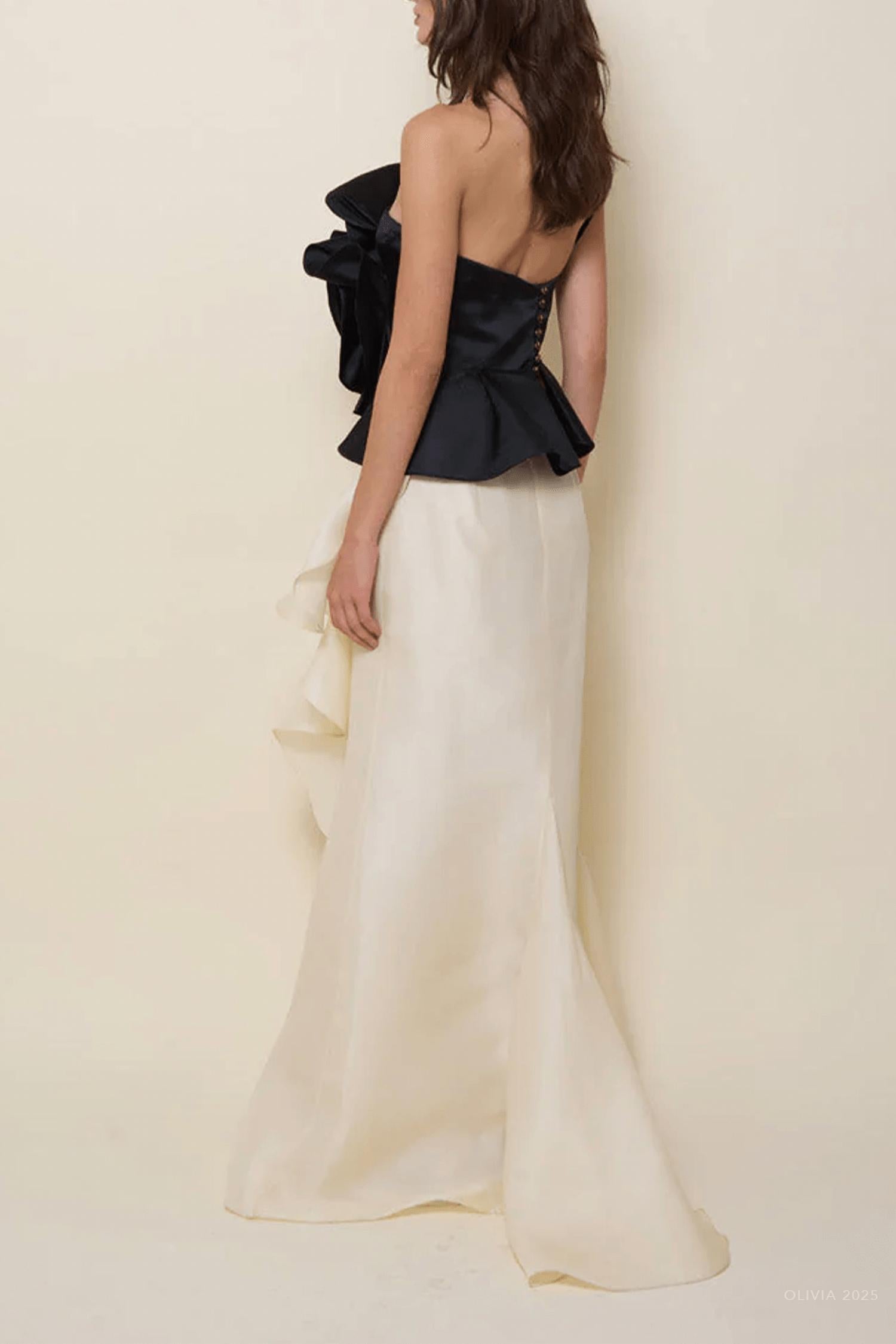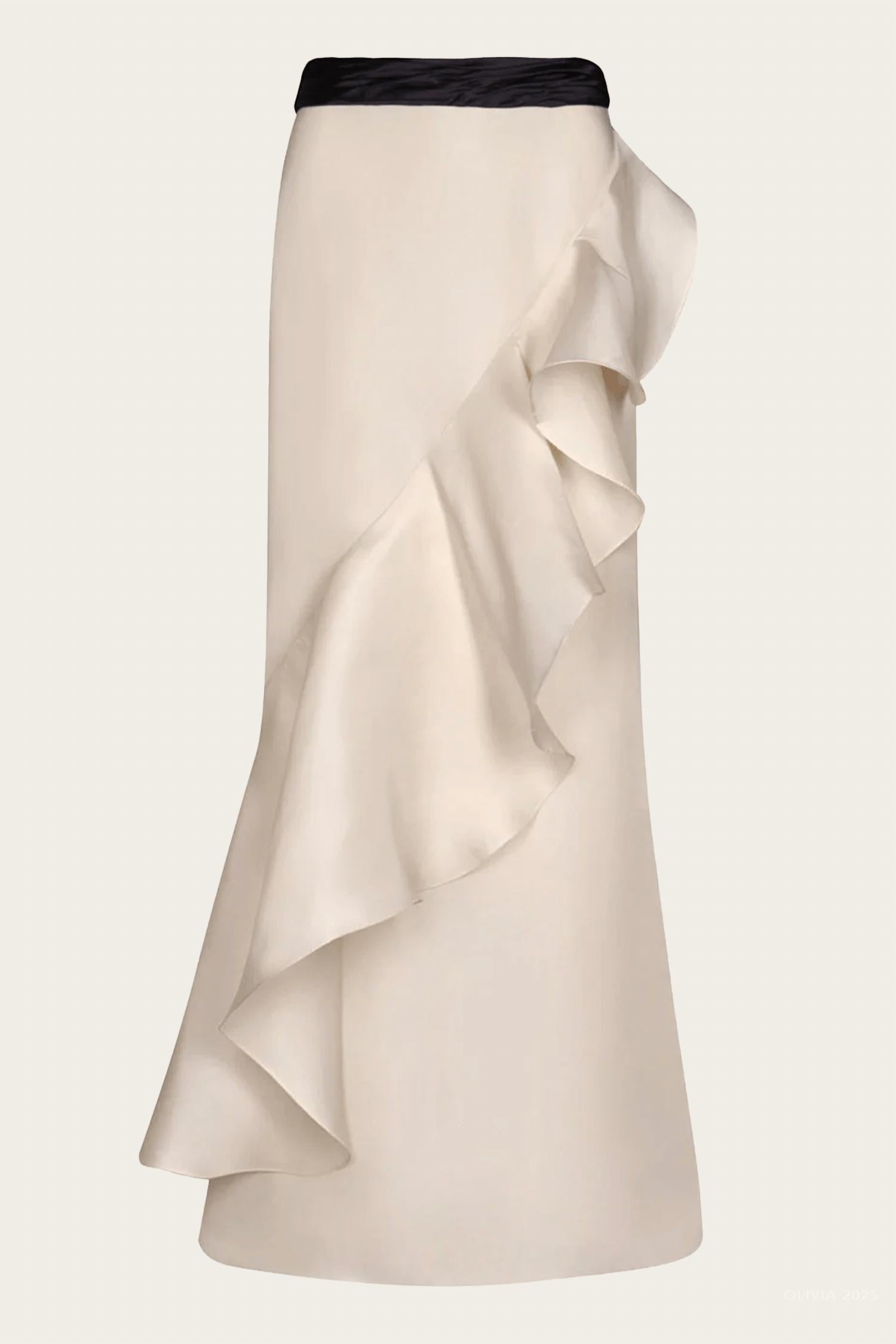 Embrace elegance with the Sevillana Skirt by Johanna Ortiz, an exquisite piece perfect for any refined occasion. This high-waisted A-line skirt is made from 100% silk, showcasing a minimalist design with a flowing shape in a sophisticated Ecru color. Crafted in Colombia, it is designed with a zip closure for a seamless finish. Dry clean only.