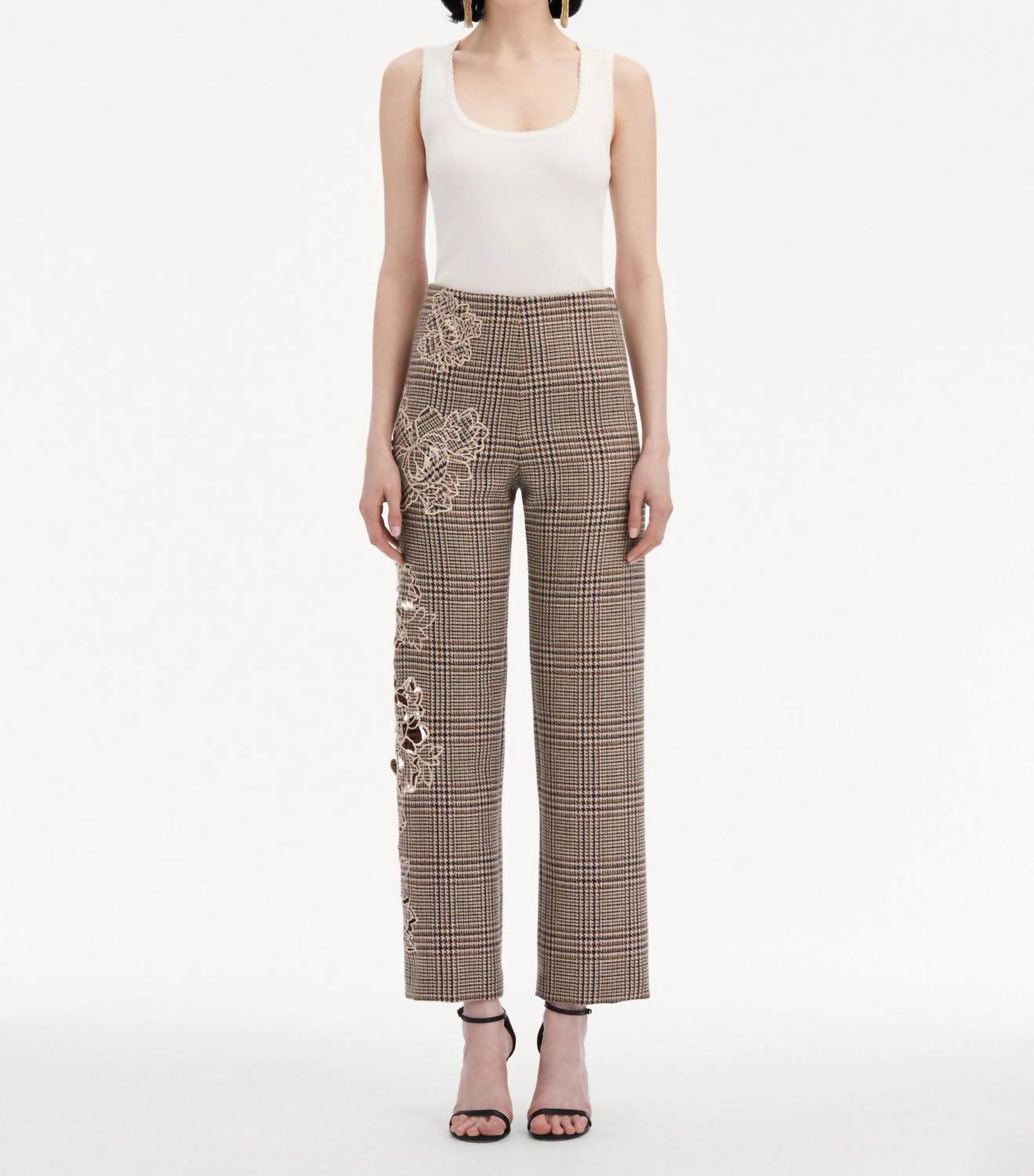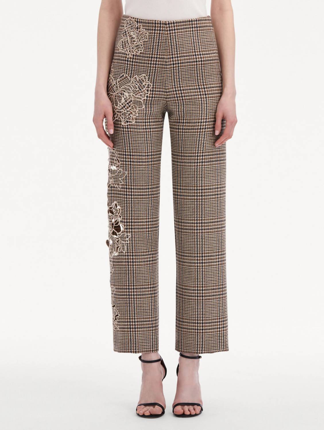 Oscar De La Renta - Peony Guipure Appliqué Plaid Pant