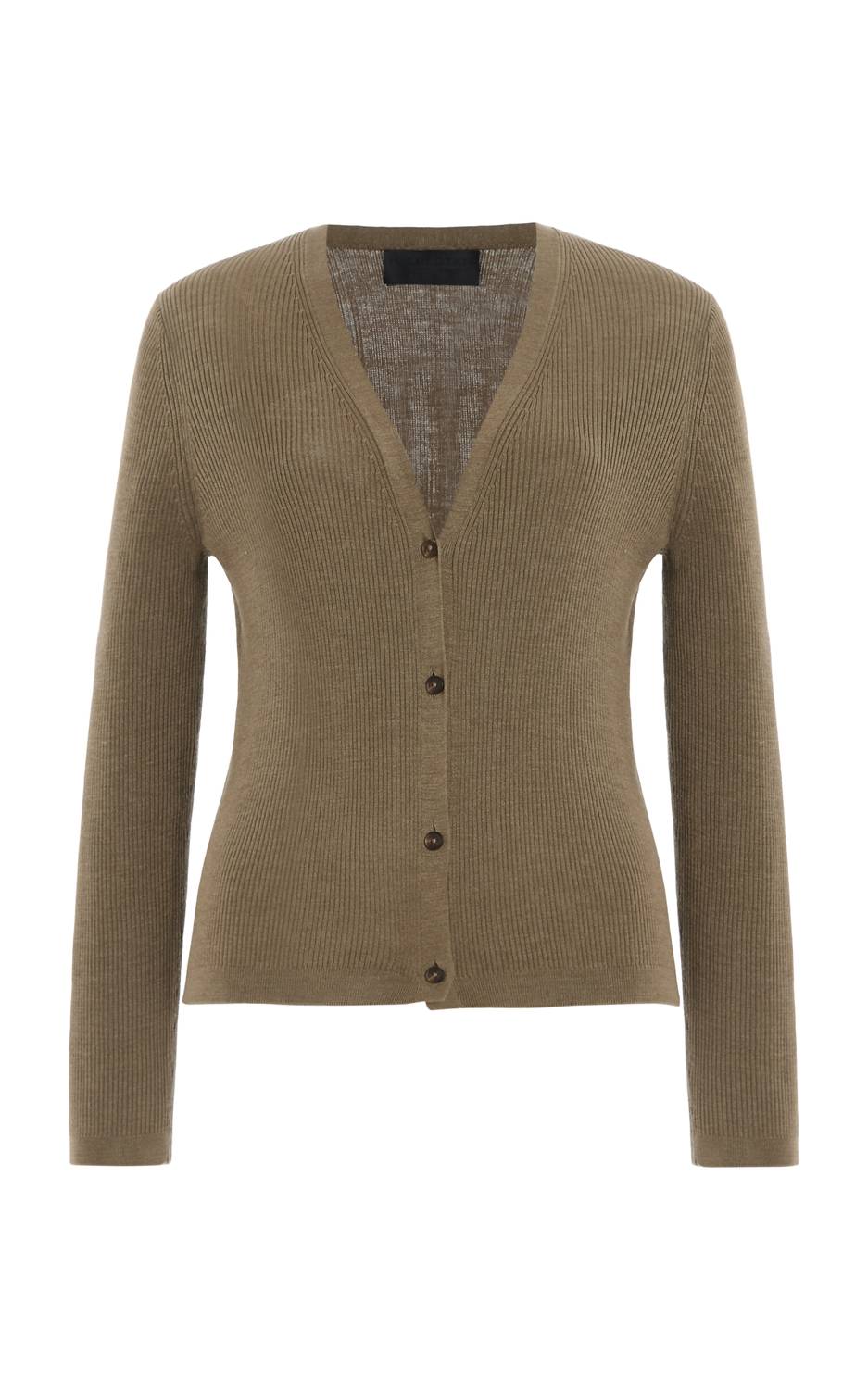 A classic fit that works just as good buttoned as it does left open. Elevate your fall wardrobe with the Nari Cardigan from NILI LOTAN, a sophisticated choice in military green for the modern minimalist. This textured piece boasts long sleeves and a luxurious 100% silk composition. Made in China, its front button closure and lightweight ribbed knit fabric offer both style and comfort. To maintain its elegance, dry clean only.