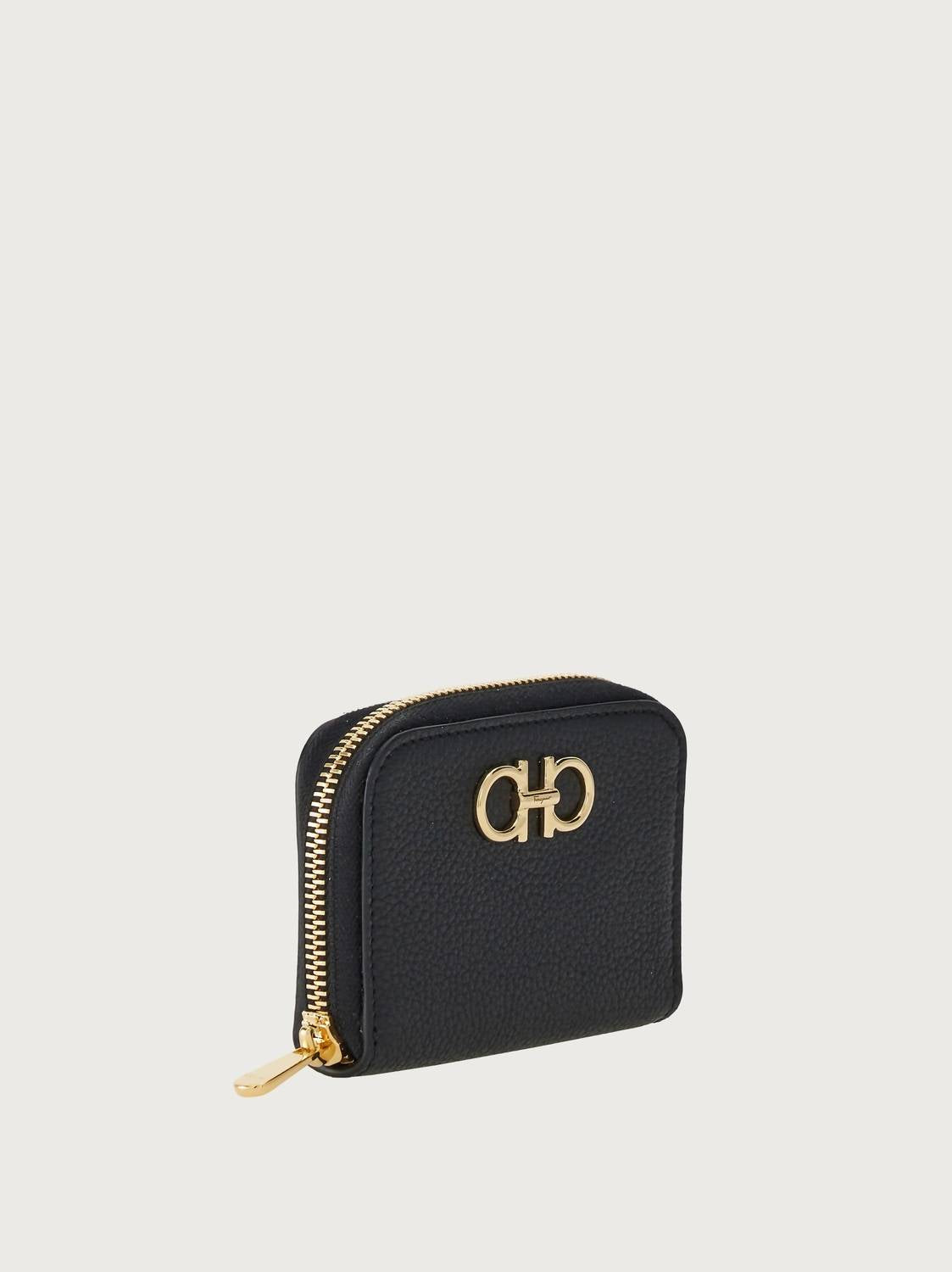 Elevate your accessory game with this stylish must-have. Not only is it functional by keeping everything organized, but it's classic and timeless in its design. Discover the elegance of the Women's Gancini Card Holder by Salvatore Ferragamo, an exquisite accessory that exudes sophistication in black calf leather. Adorned with gold-tone hardware, this chic card holder is masterfully crafted in Italy. Its design features an all-around zip fastening that opens to reveal a main compartment and an internal slip pocket. With dimensions of 2.76" in width, 3.94" in height, and 0.79" in depth, it perfectly combines practicality with style.