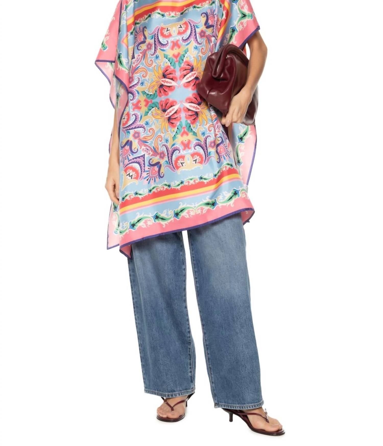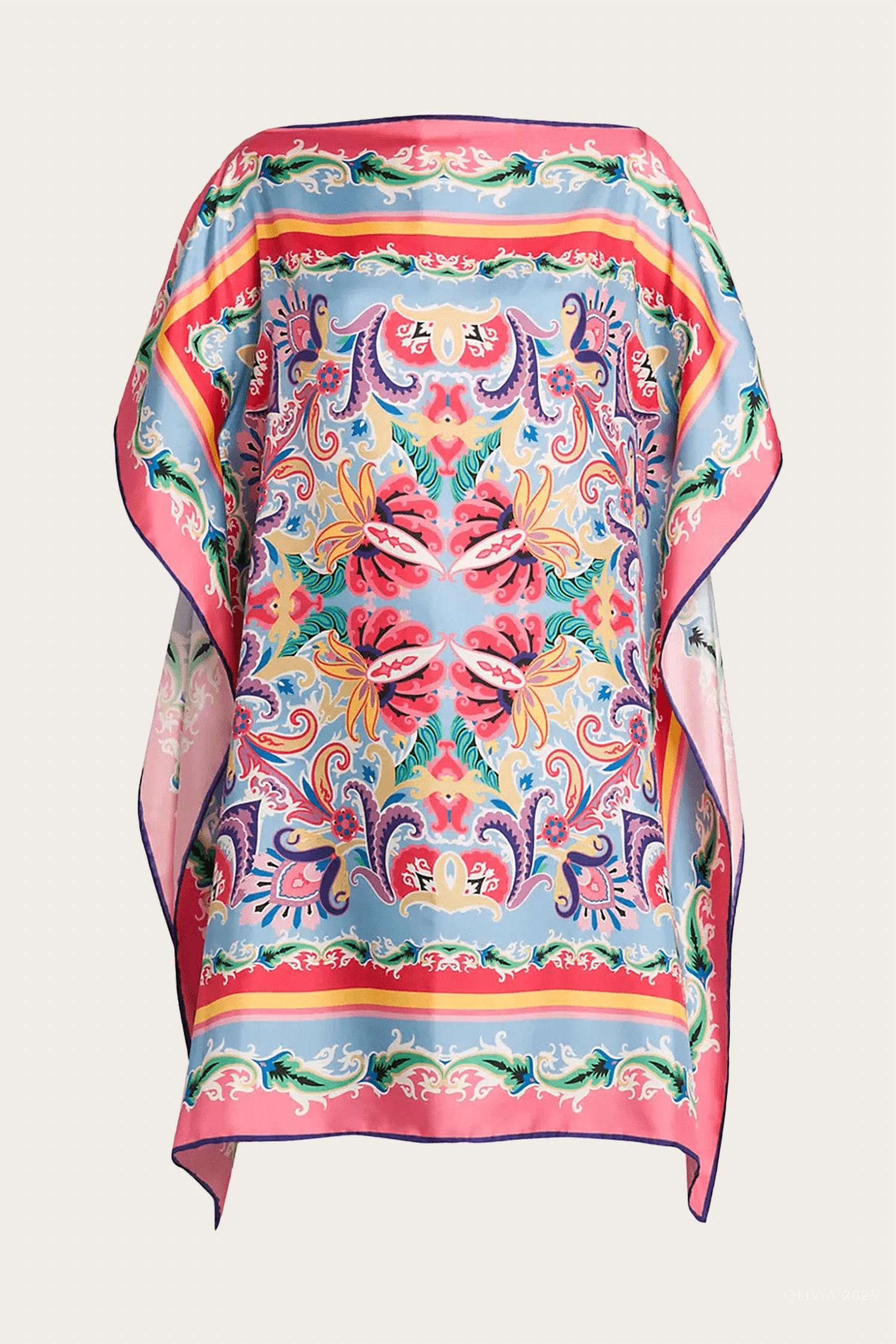 Discover the versatile charm of this tunic blouse, designed with both layering and standalone wear in mind. Its flattering silhouette and stylish details make it a closet essential. Embrace elegance with the Printed Silk Foulard Top, a luxurious piece by ETRO crafted from 100% silk. This pink tunic, made in Tunisia, showcases a captivating blend of prints and features a boat neckline with an elongated length for a boho-chic aesthetic. Designed with short sleeves and a pull-on closure, it's perfect for a summer dinner party. Hand wash to maintain its exquisite silk texture.