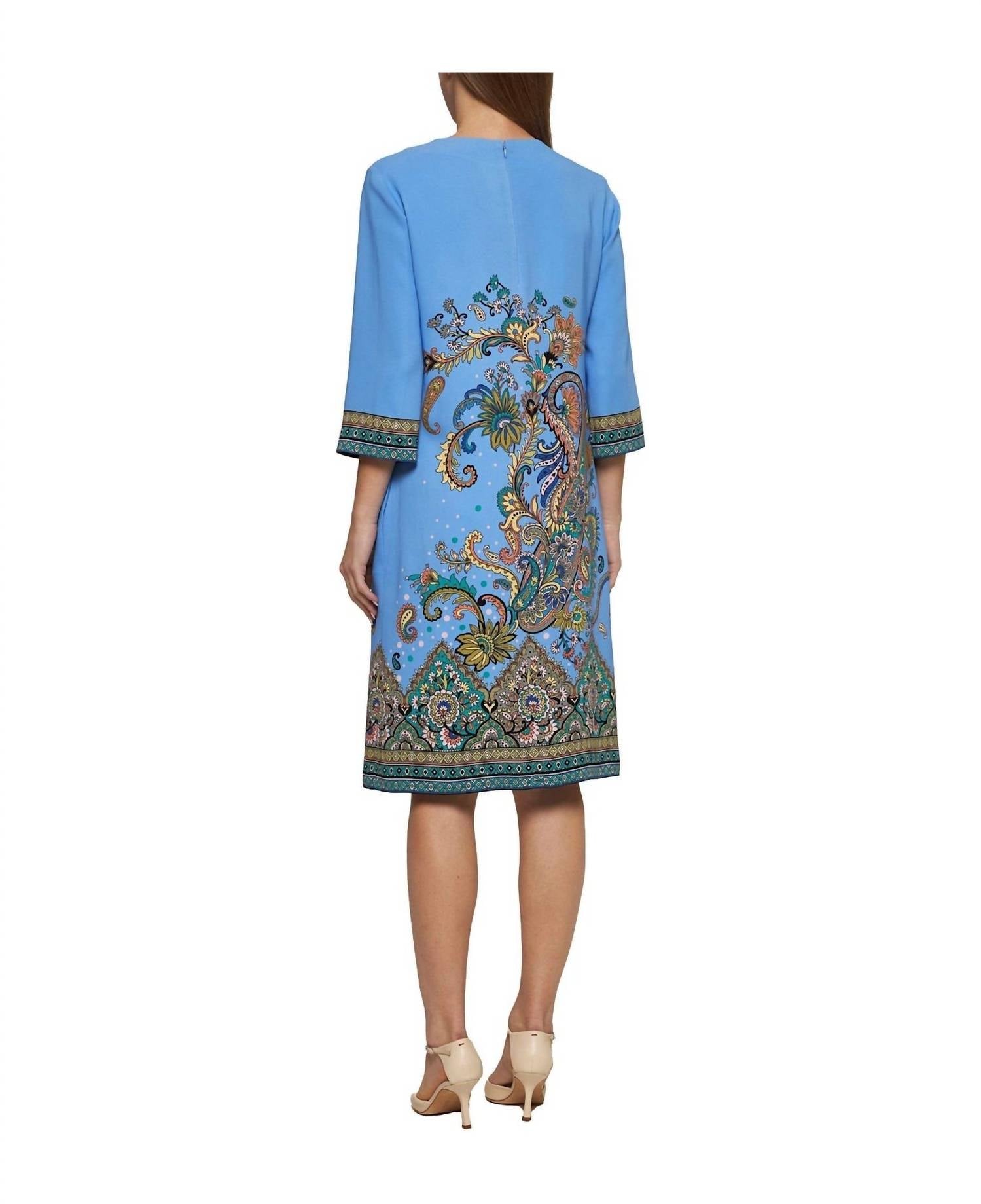 The kind of easy and flattering dress you'll be reaching for all season long. Introducing the Paisley Print Dress by ETRO, a stunning kaftan silhouette in light blue designed for chic evening events. This knee-length dress features a crew neck and three-quarter length sleeves, with a subtle rear zip fastening and convenient slit pockets on the side. Crafted from a soft viscose blend with a 96% viscose and 4% elastane composition, it also boasts a 100% viscose lining for added comfort. Care instructions recommend hand washing and line drying to preserve its elegant, patterned design.