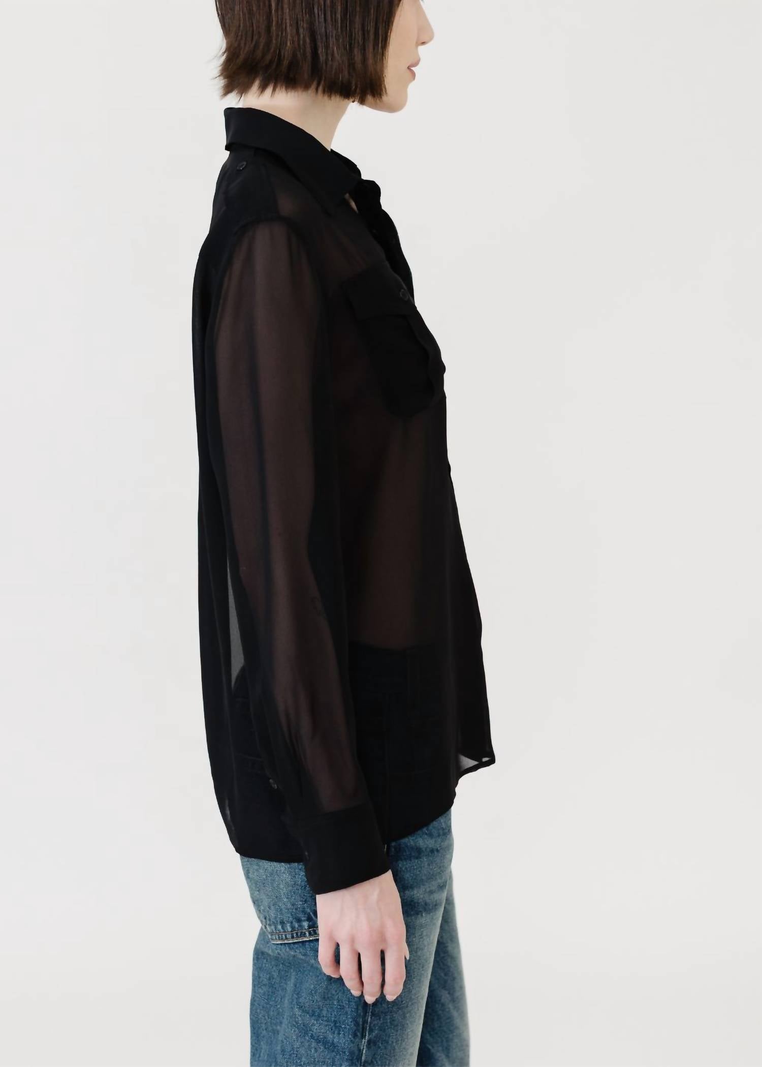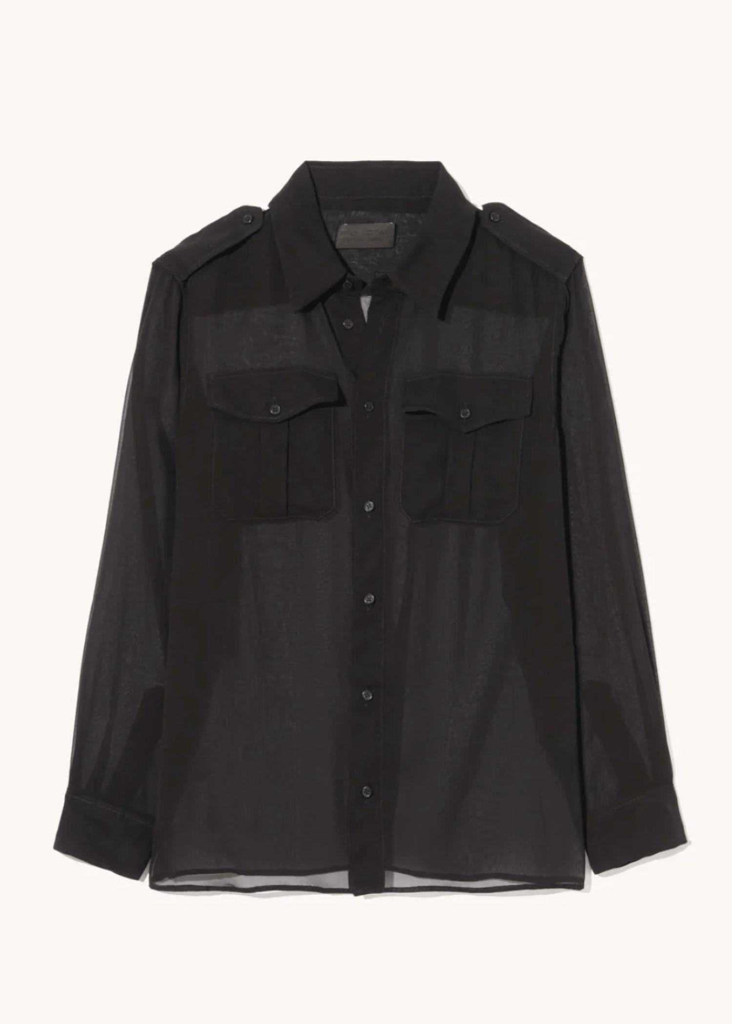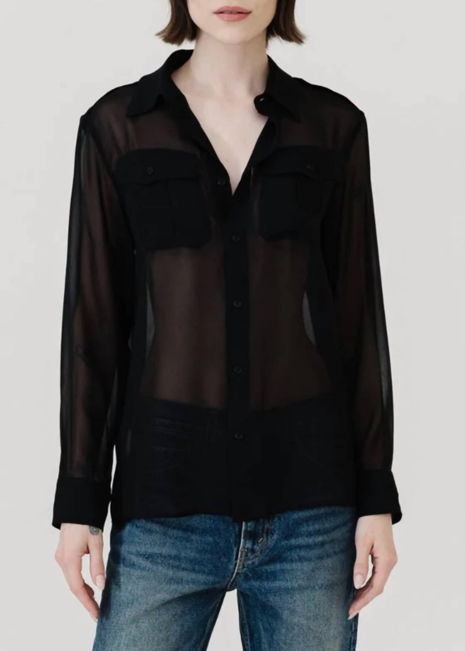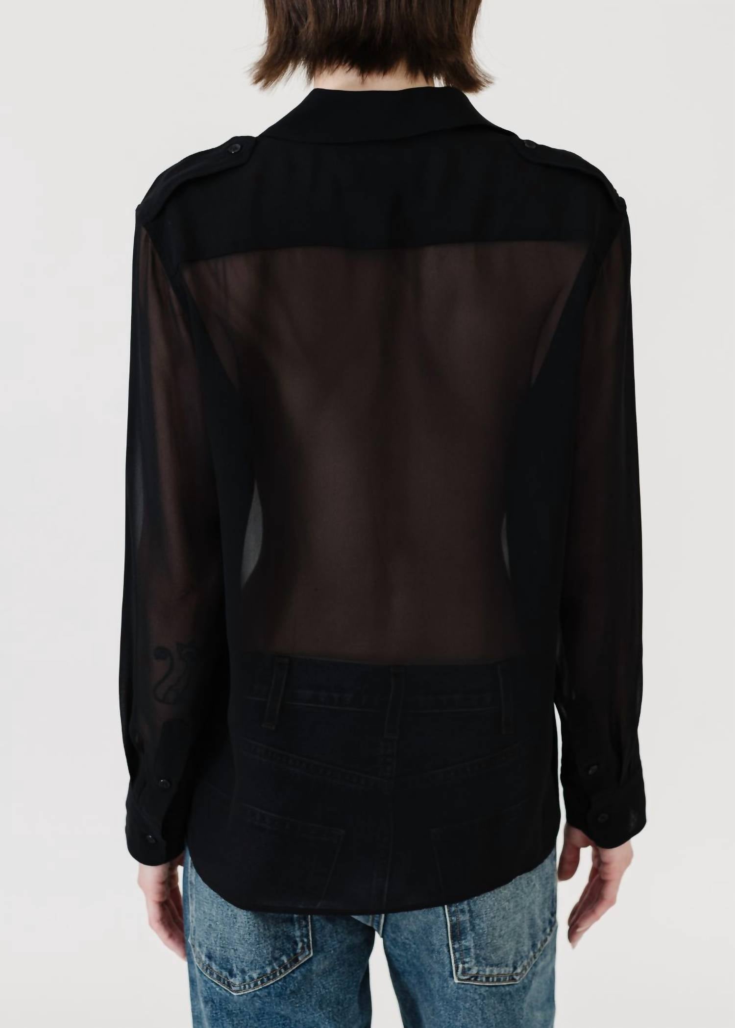 Perfectly tailored and soft to the touch. Elevate your wardrobe with the Betty Chiffon Silk Shirt by NILI LOTAN, a must-have for those who appreciate refined elegance in black. This long-sleeve button-down features 100% silk composition, made in the US, showcasing epaulettes and pleated pockets with flaps for a sophisticated touch. The loose, straight fit is complemented by a rear yoke and a classic collar, designed to offer style and comfort. Closure: Button closure. Care: Dry clean only. Model is 5'8" and wearing a size Small.