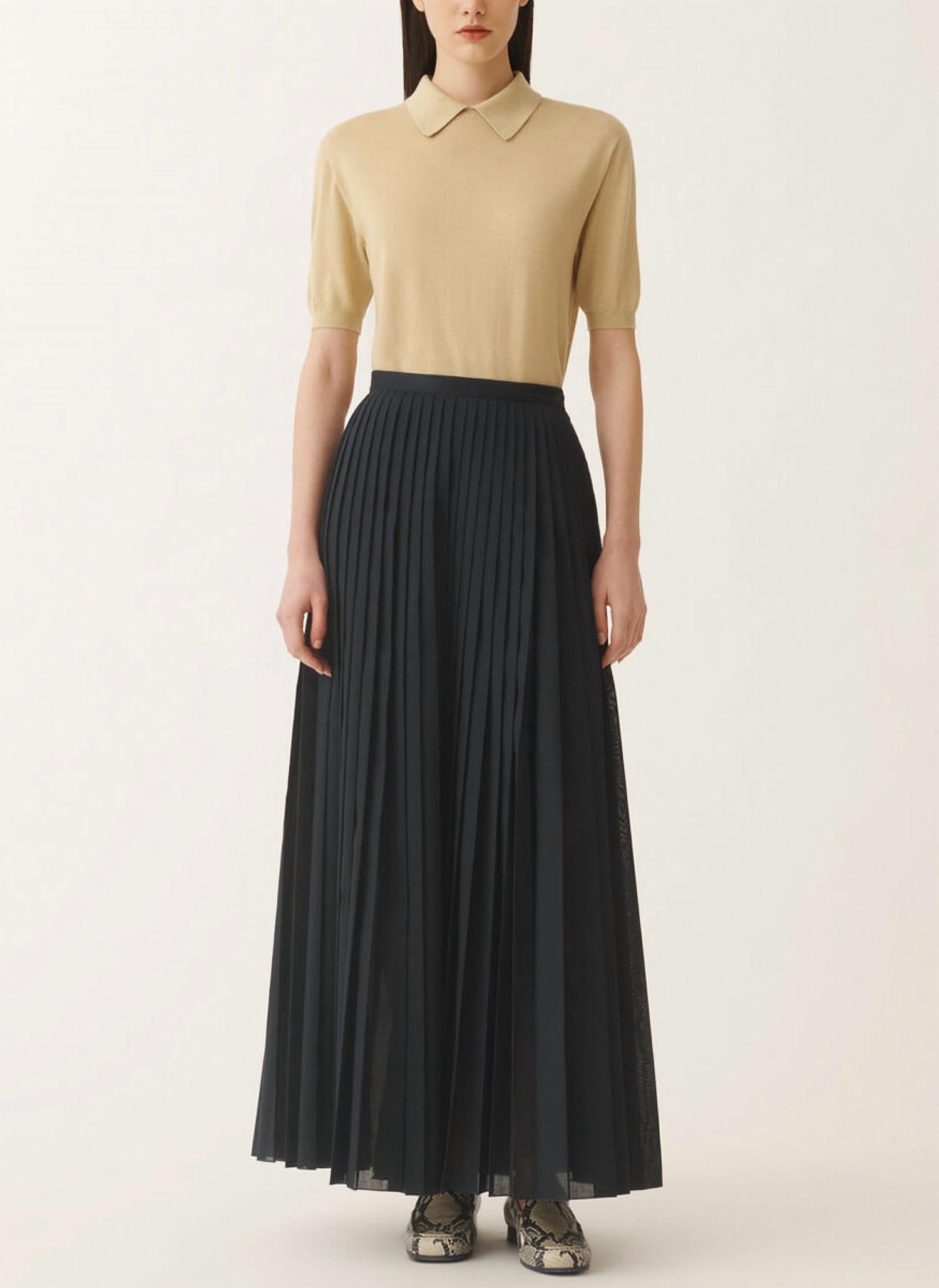 The midi length skirt is here to stay and we especially love this style. Elevate your style with the Pleated Muslin Midi Skirt by FABIANA FILIPPI, a sophisticated piece in a striking blue notte hue. This women’s skirt is crafted from a 65% polyester and 35% cotton blend, ensuring a durable yet comfortable wear with its pleated, A-line silhouette and midi length. Made in Italy with impeccable craftsmanship, it features a secure button closure. Care: Dry clean only.