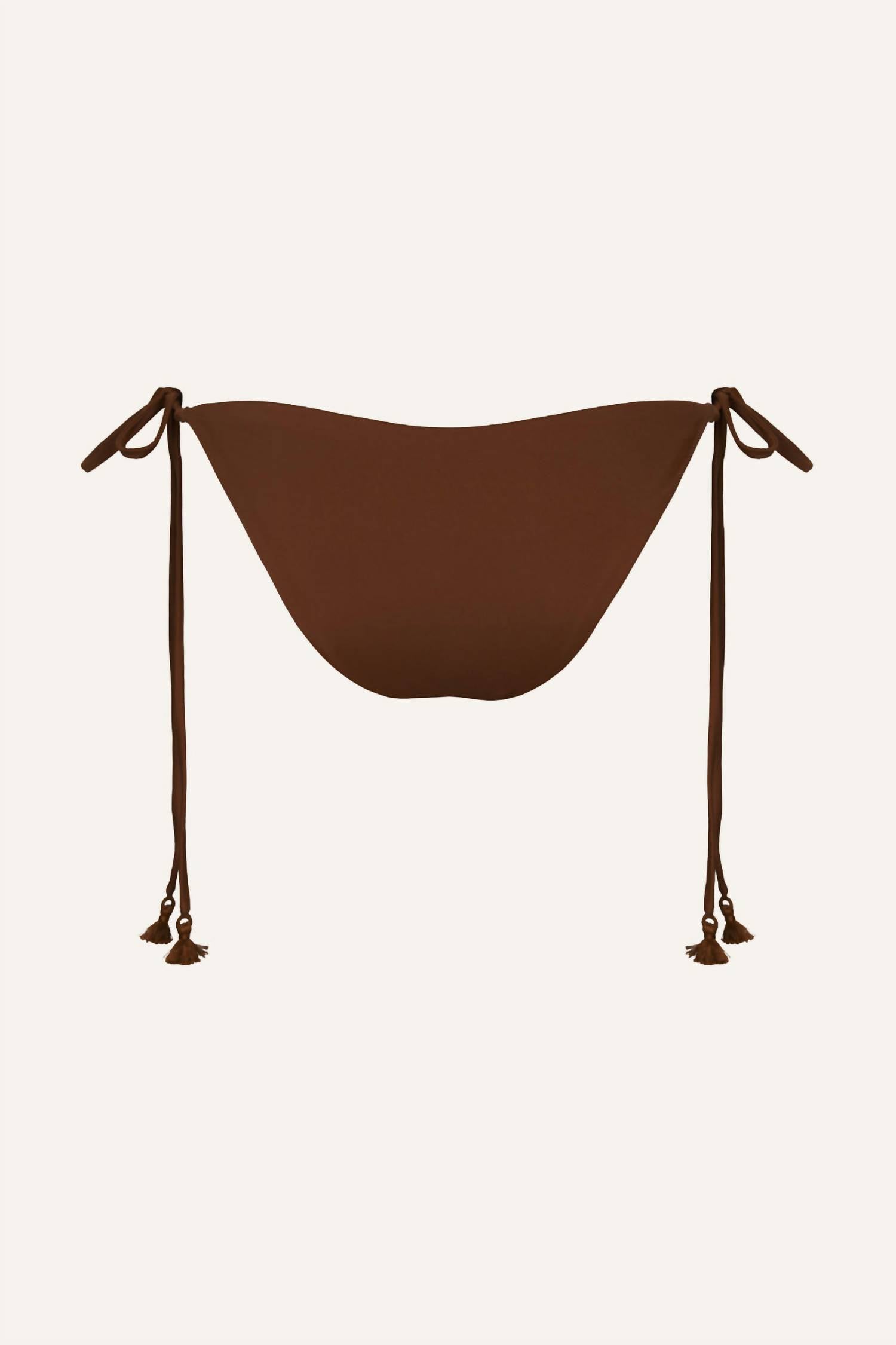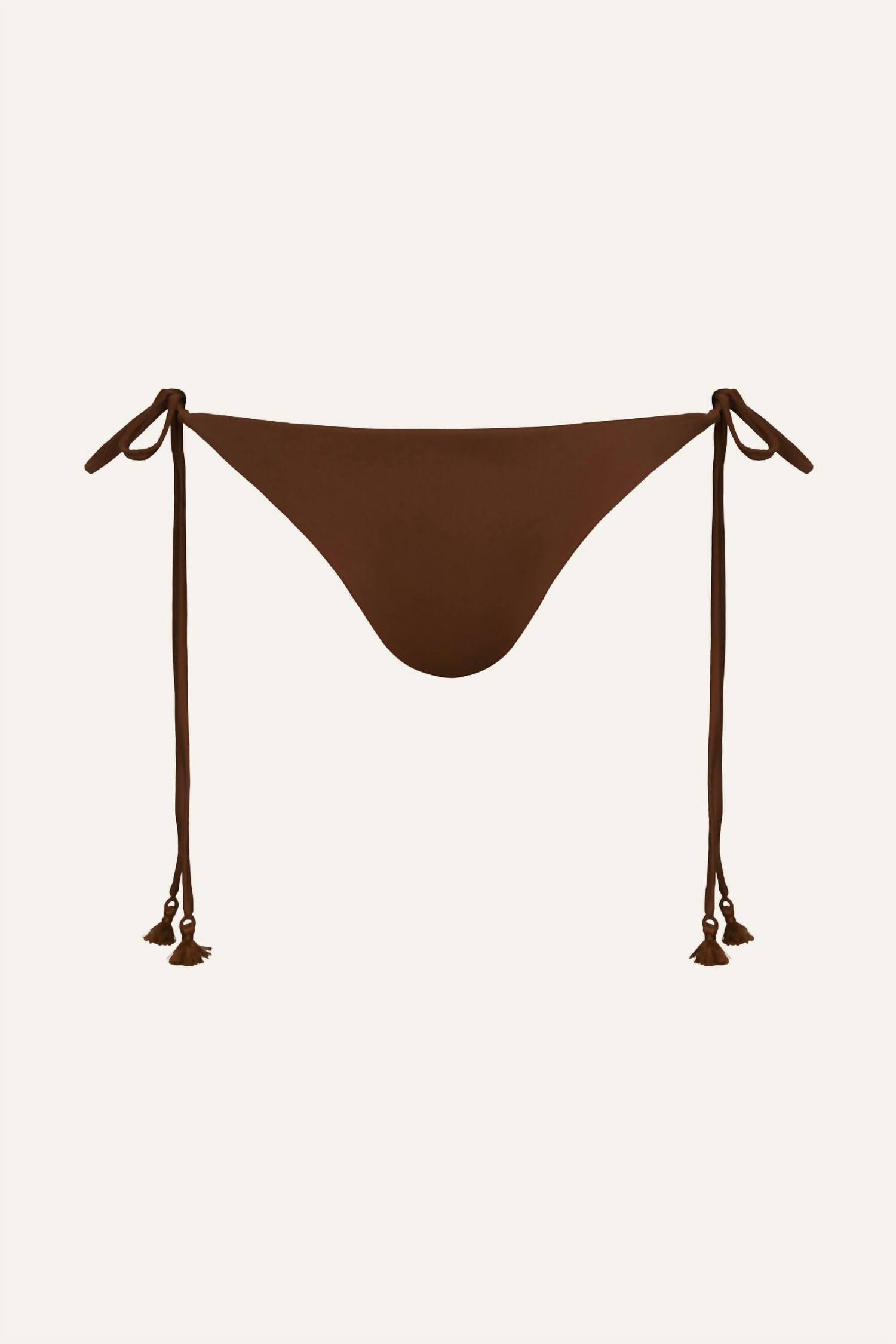 This one piece fits like a glove and covers all the right areas. Enhance your beach style with the Women's Entorche Del Mar Bikini Bottom by Johanna Ortiz, crafted from 78% recycled polyester and 22% elastane for a sustainable choice. This terracotta swimwear, made in Colombia, features adjustable tie sides with tassel details for a versatile fit and adjustable coverage. Fabricated in lycra, it is perfect for summer escapes and beach days. Care for this elegant piece by hand washing to preserve its vibrant color and impeccable design.