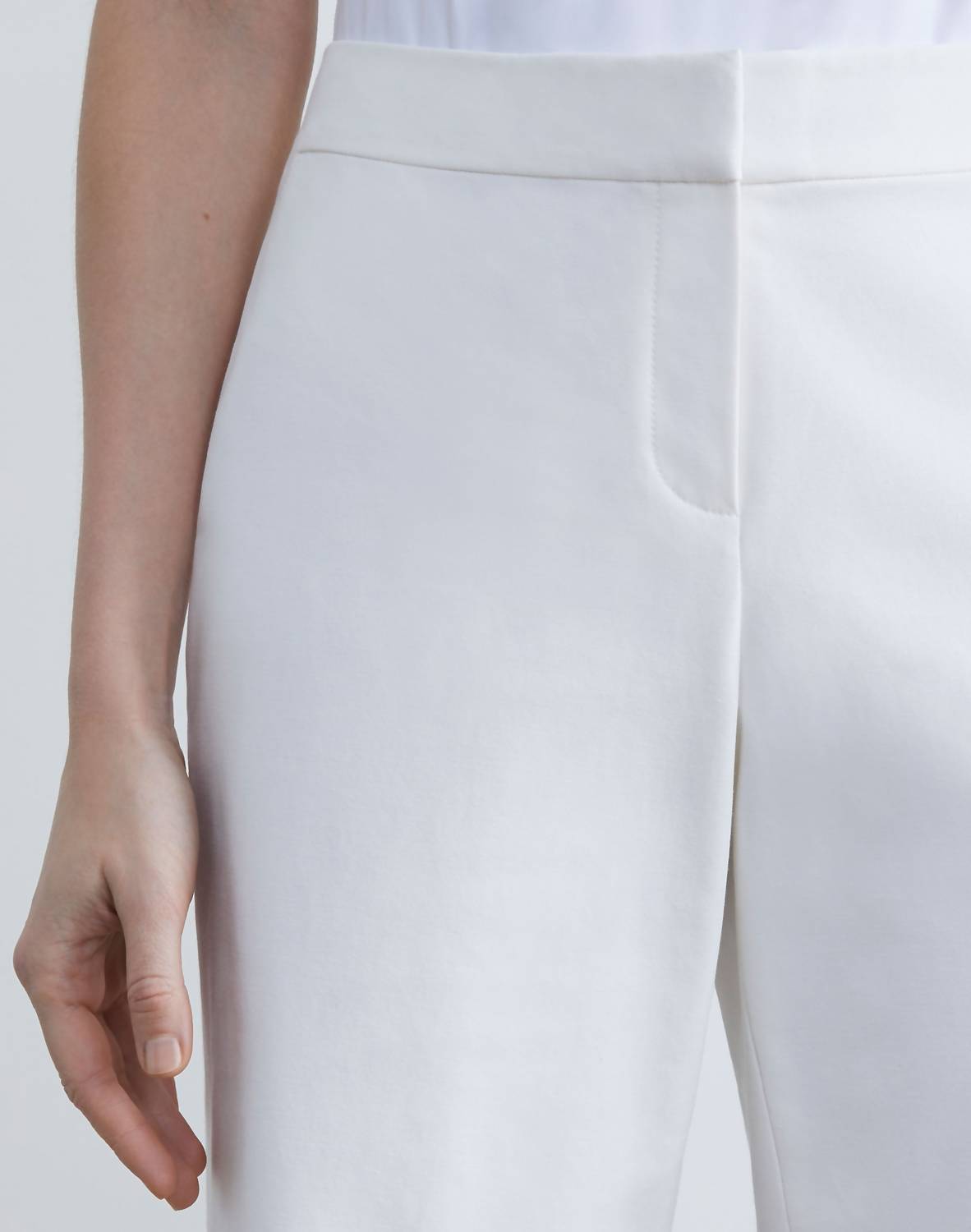 A preppy and feminine take on the classic bermuda short. Comfortable enough to lounge in and cute enough to wear out during your next warm weather outing. Meet the Lafayette 148 Technical Stretch Cotton Bermuda Short, crafted for a chic and comfortable fit. These mid-rise Bermudas feature a skinny-leg fit with a 12" inseam and a 9" rise for a flattering silhouette. Made from a solid Sea Salt cotton blend, they are designed with a zip closure and convenient slant pockets. Expertly made in Italy, these shorts can be machine washed cold or dry cleaned to maintain their pristine look.