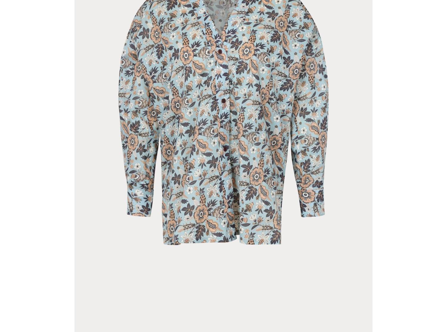 A versatile blouse that works from desk to dinner! Embrace effortless elegance crafted in an exclusive Shasta Print. Floral, long-sleeve blouse. Made from 100% cotton. Tailored with a V-neckline and a relaxed fit for comfortable everyday wear. Proudly made in US. Features a button closure. Perfect for adding a touch of boho chic to your spring wardrobe, it's a versatile piece for any holiday party.