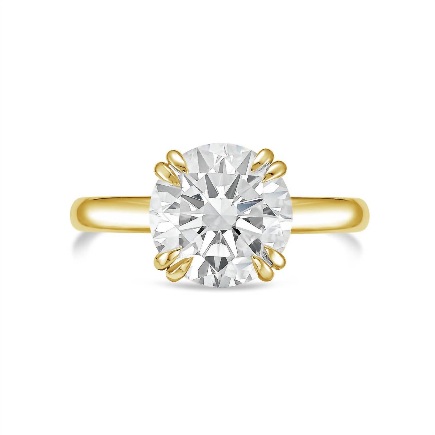 The wear-everywhere ring that you won't want to take off. Embrace timeless elegance with the Lab-grown Round-cut Diamond Solitaire Ring from Diana M Jewels. Featuring a generous 12.00 carat total weight of white, colorless diamonds rated at a very slightly included clarity, this piece is the epitome of luxury. Crafted from 18kt yellow gold, the classic split claw prong setting beautifully showcases the lab-grown round brilliant gemstone. This fine jewelry piece is perfect for April birthdays, embodying the allure of a premium D-F color grade.