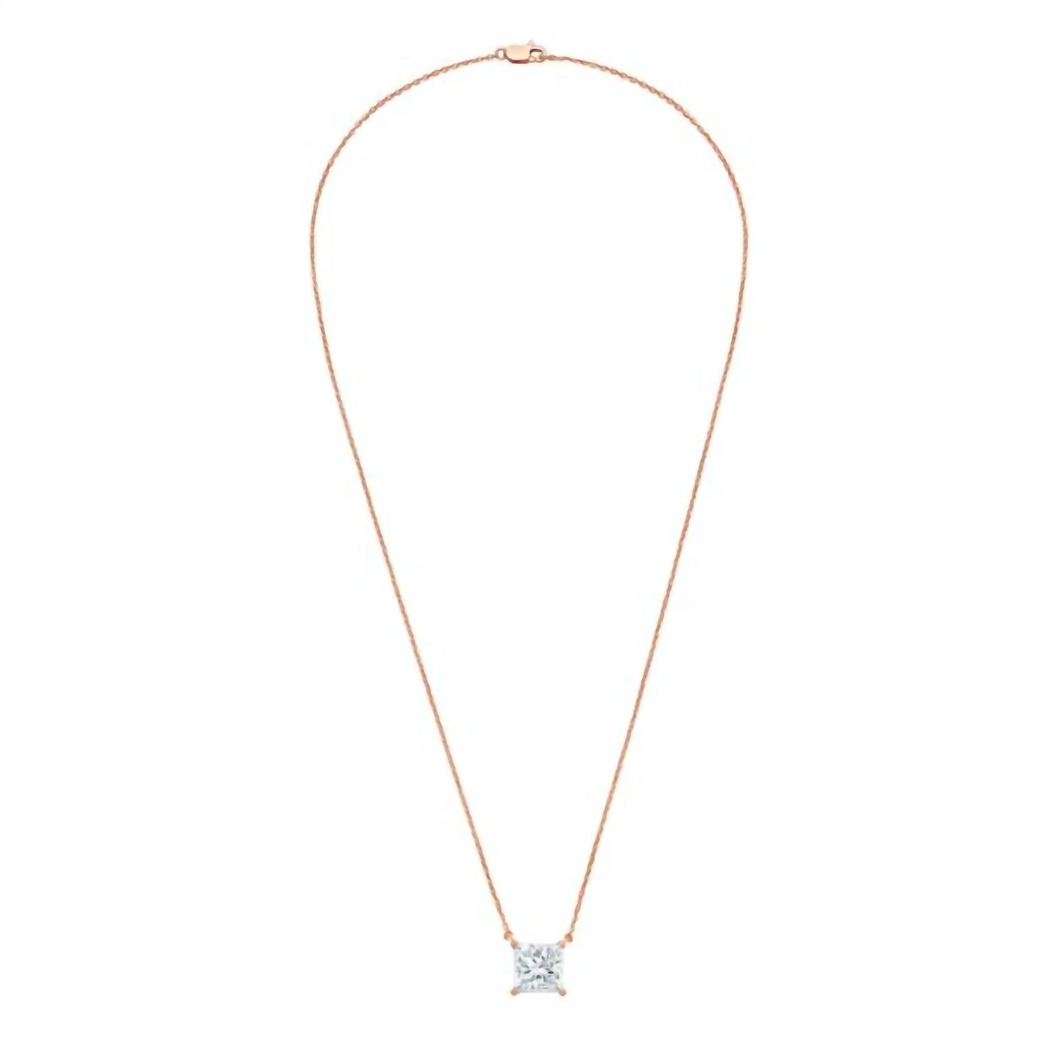 The perfect stand-out necklace that complements even the most basic t-shirt. Indulge in the elegance of the Princess-cut 6.00 Ct Lab-grown Diamond East–west Necklace by Diana M Jewels, crafted with exquisite 14kt Rose Gold. This fine jewelry piece showcases a stunning lab-grown diamond, immaculately cut in a princess shape with a weight of 6.00 ct and rated D-F in color, ensuring a premium, colorless quality. Secured with a prong setting, this pendant features a lobster clasp for a secure fit. The diamond's Very Slightly Included clarity enhances its brilliance, making it a radiant choice for any April-born or diamond enthusiast.