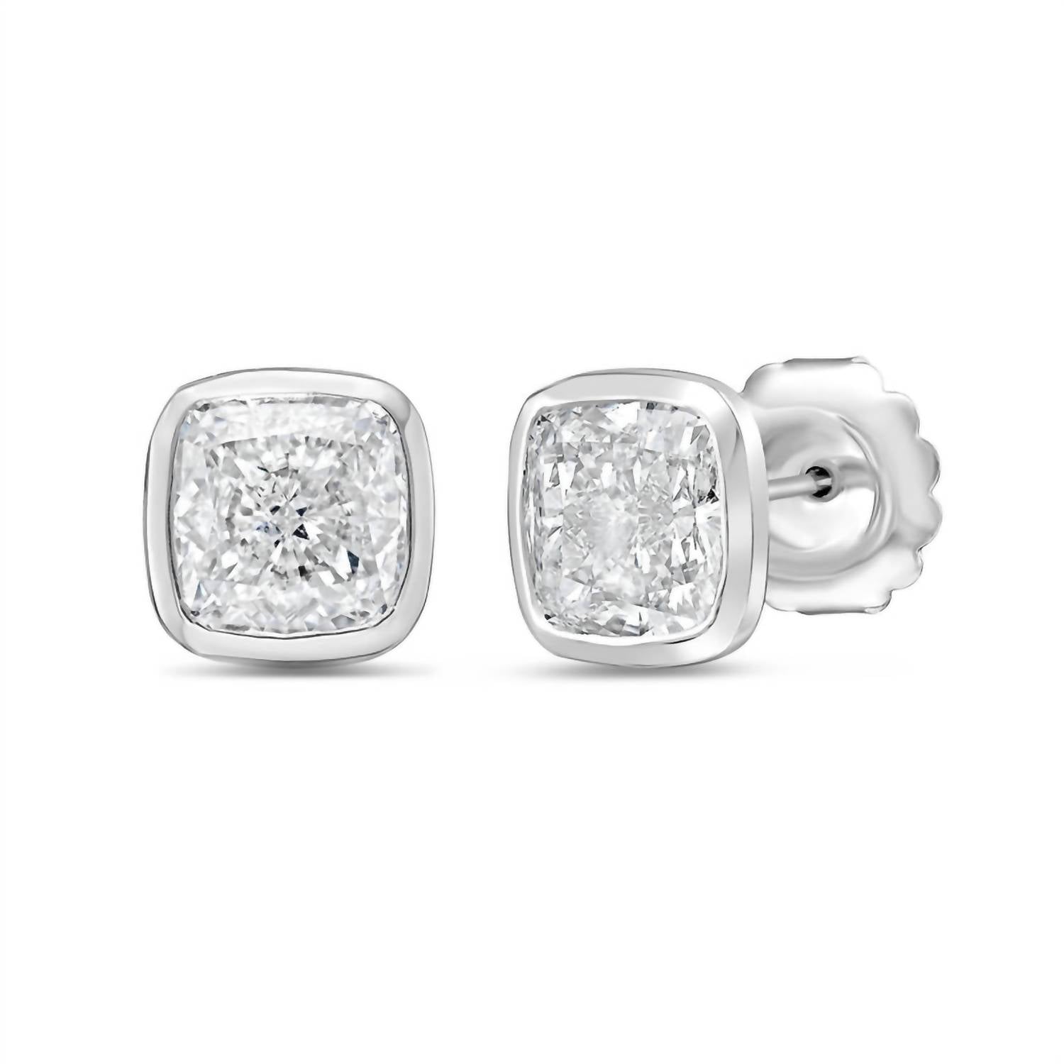 Diana M Jewels - Women's Cushion Cut Studs In A Bezel Setting Earrings (8.00 Ct)