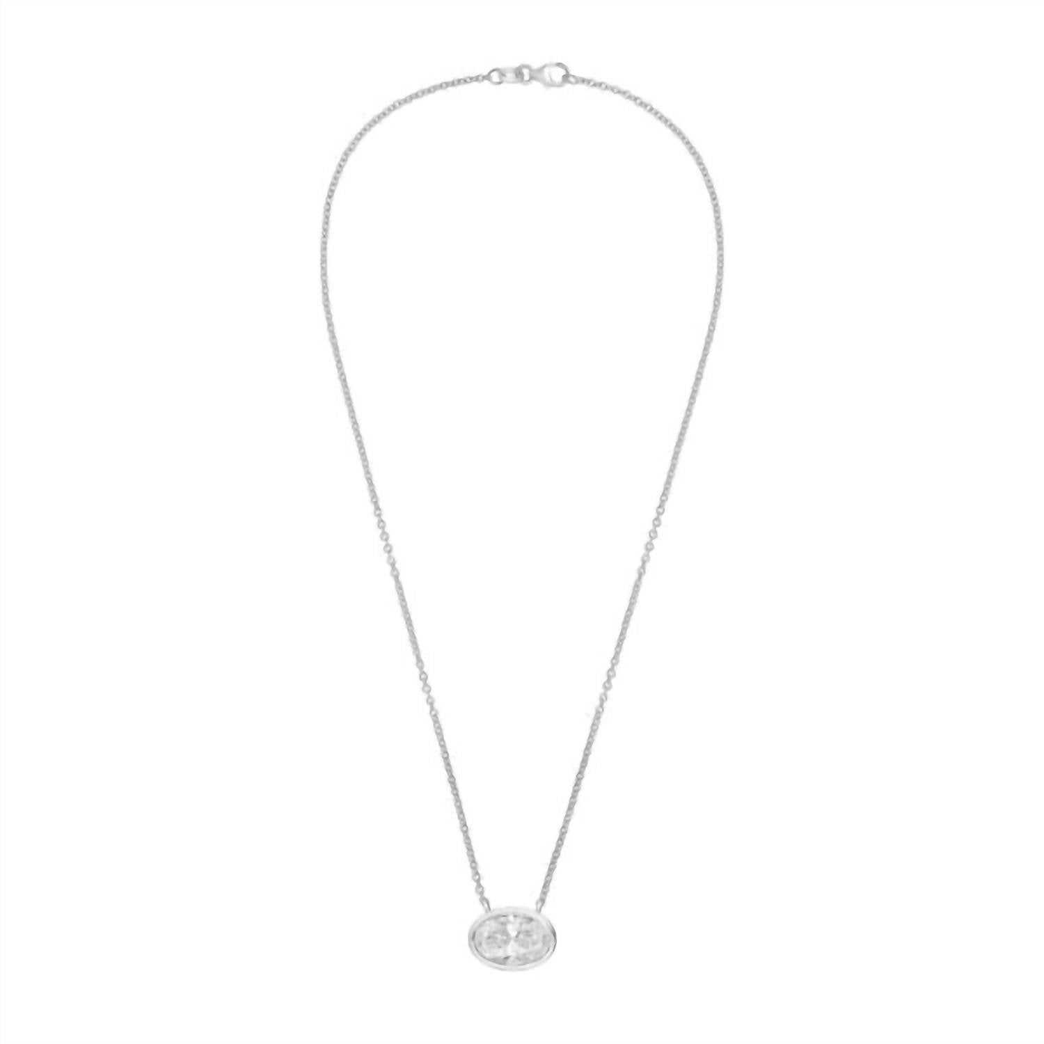 This sophisticated pendant showcases an east-west set oval lab-grown gemstone with an approximate total weight of 8.00 carats. The stone is secured in a sleek bezel setting that accentuates its elongated silhouette and modern elegance. A timeless design perfect for both everyday wear and special occasions.