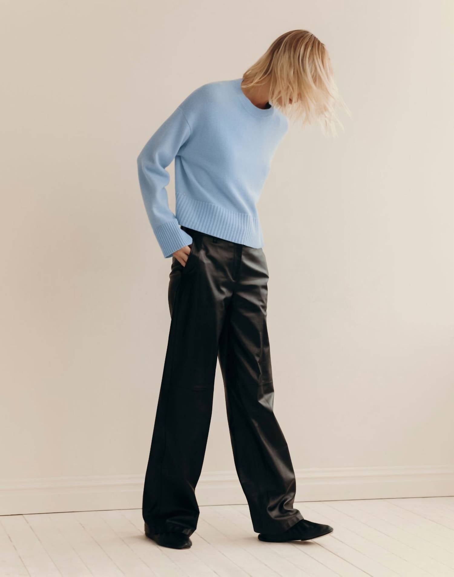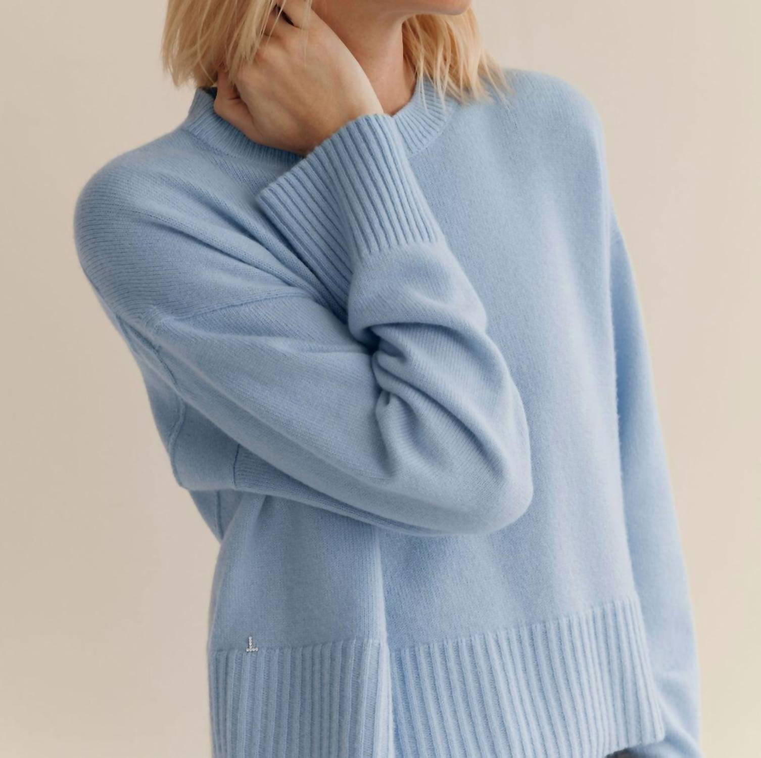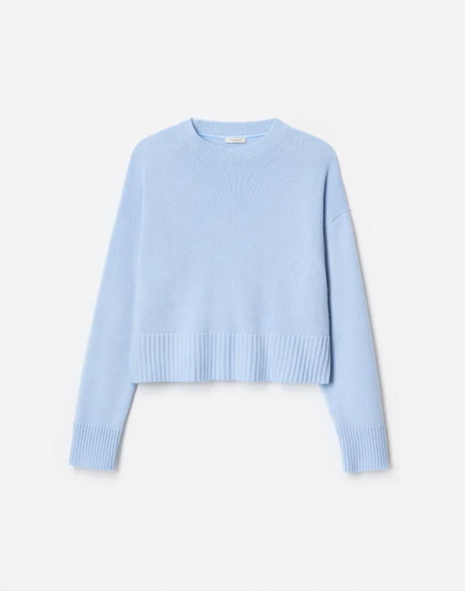 Stay warm and stylish in this versatile and effortlessly cool knitwear staple. Wear it alone or layered, it's the perfect sweater for the season and you'll wish you had it in every color. The Cashmere Crewneck Cropped Sweater by Lafayette 148 in the color Bluebell is crafted from pure cashmere, offering ultimate softness and luxury. It features long sleeves and a relaxed fit with a drop shoulder, complemented by engineered seaming that tapers towards the back and ribbed trims on its cropped, boxy silhouette. This imported pullover uses 100% cashmere for a cozy yet stylish look. To keep it in perfect condition, dry cleaning is recommended, or you can hand wash it cold.