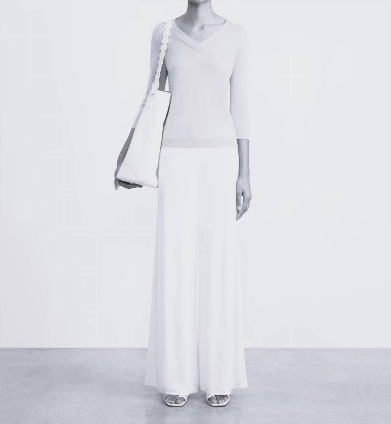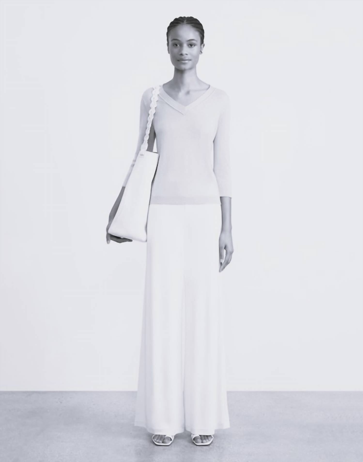 Wear this v-neck sweater with your favorite denim for the perfect fall look. Expertly crafted from a new exquisitely soft, ultra-lightweight fine gauge cashmere, this three-quarter sleeve sweater is a versatile layering piece that also wears well alone. The V-neck silhouette is perfectly relaxed and artisanally finished with rounded trim and softly rolled edges.