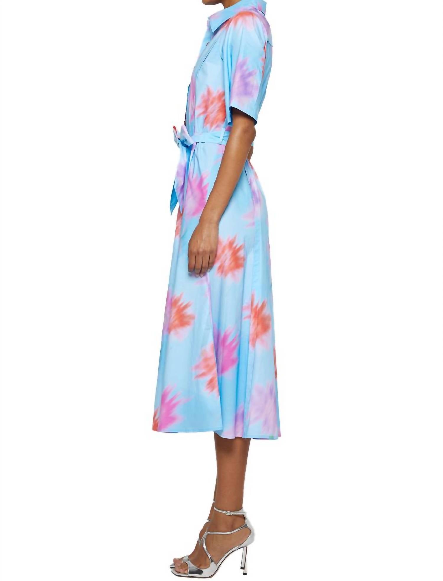 Just add slides or mules and you are good to go. Embrace timeless elegance with the Short Sleeve Midi Floral Shirtdress by Prabal Gurung, perfect for any summer cocktail party or Thanksgiving gathering. This women's dress features elbow-length sleeves and a midi length, showcasing a stunning blue floral pattern. Designed with a classic collar neckline and a button closure, it offers a sophisticated shirt silhouette. Ideal for embracing 90s fashion trends, this dress is truly a versatile addition to your wardrobe.