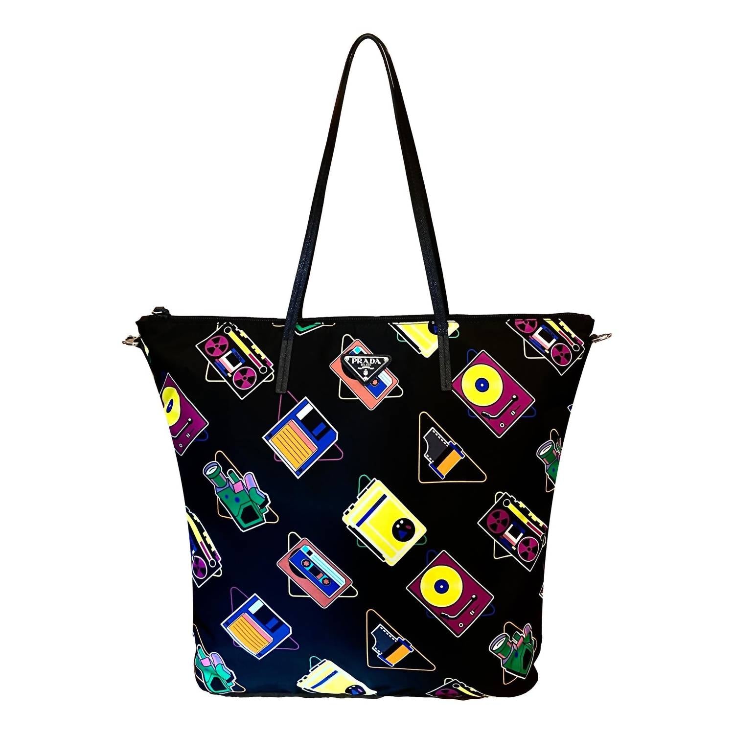 Prada - Women's Cassette Print Nylon Convertible Shopping Tote Handbag