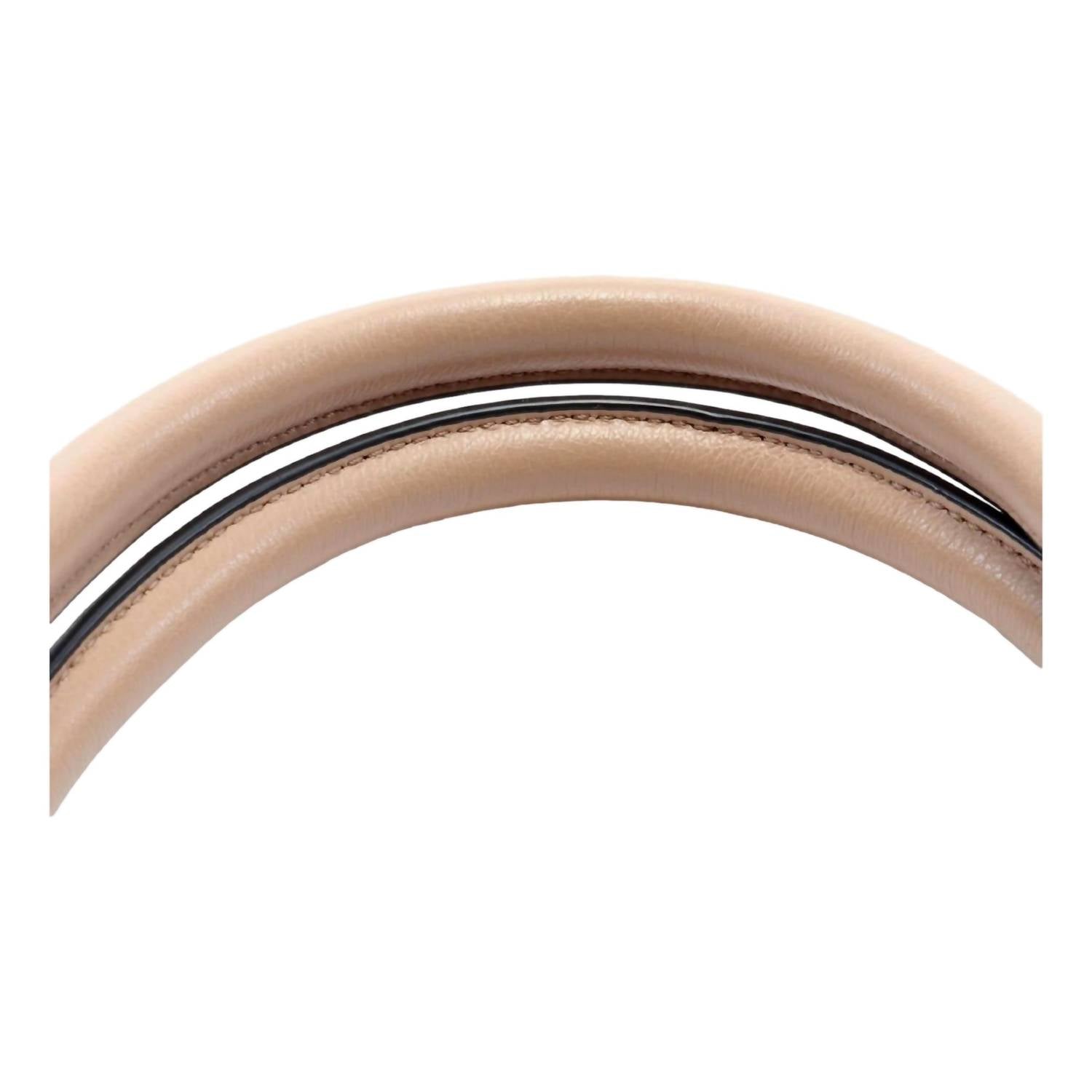 The carry-all tote bag of the season. Get in vacation mode with this perfectly sized tote bag that is the perfect accessory for beach days, pool parties, or sunset dinners. Elevate your daily ensemble with the Prada Women's Embossed Logo Soft Leather Handbag Shopper Tote in Cammeo Beige. Crafted in Italy, this tote features soft leather with an embossed Prada logo, offering understated luxury with gold-tone hardware. Its functional design includes rolled leather top handles, a detachable shoulder strap with a 20" max adjustable drop, and a spacious interior comprising three compartments, two zipper pockets, and one slip pocket. Dimensions are 13" x 6.5" x 9.5", and it comes complete with a Prada dust bag and authenticity cards for added assurance.