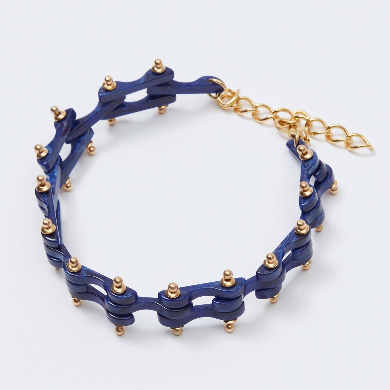 The perfect stand-out necklace that complements even the most basic t-shirt. Introducing the Women's Bedford Choker Necklace by RACHEL COMEY, a fine jewelry piece that exudes elegance in Lapis Blue. Expertly crafted in Italy, this necklace is composed of 75% Methacrylate and 25% Nickle Free Plated Brass, making it a sophisticated choice for any occasion. This mixed metal creation showcases a modern touch while ensuring comfort and style. Embrace the allure of this exquisite choker and elevate any ensemble with its unique charm.