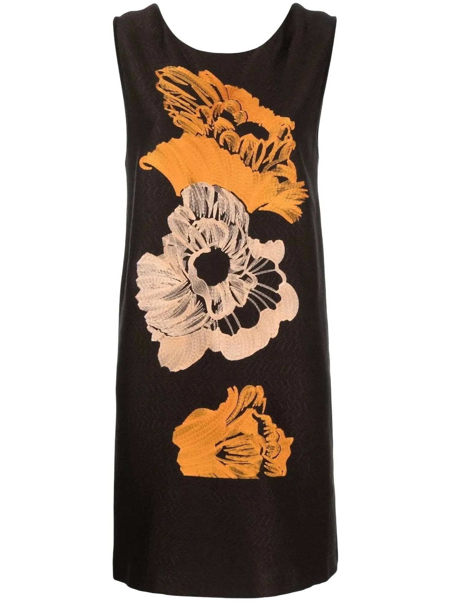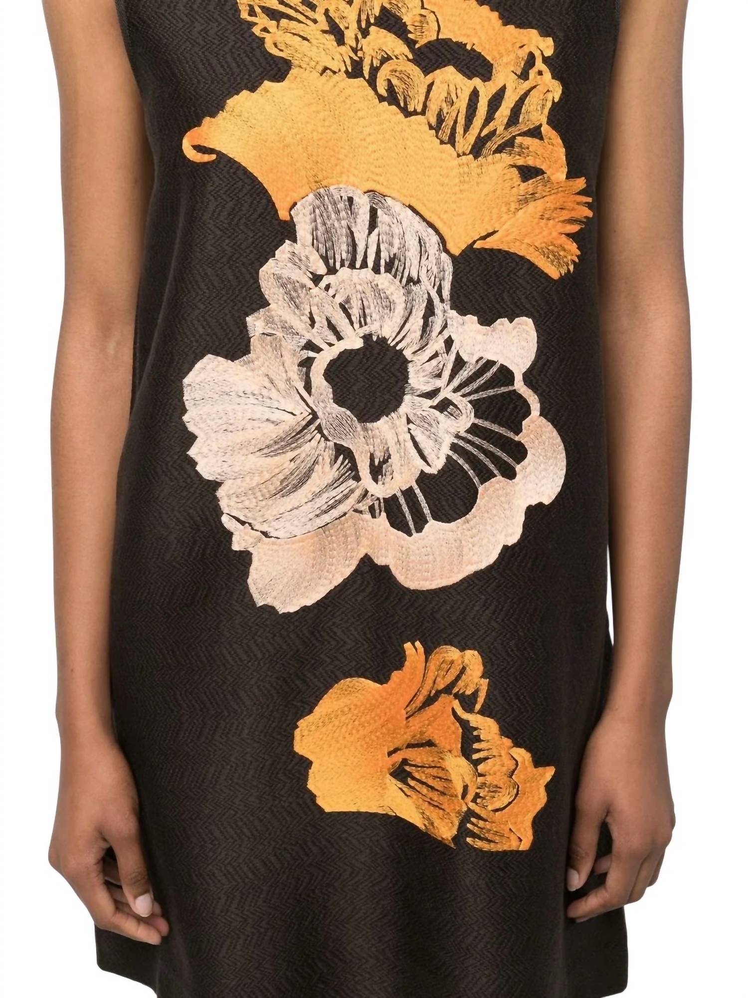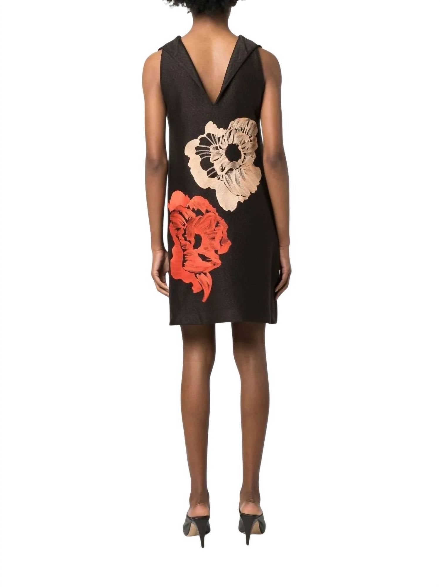 The perfect mini dress for those warmer months. The Women's Embroidered-floral Detail Dress by Salvatore Ferragamo in chocolate brown offers a boho chic vibe with its floral embroidery and chic V-back detail. Designed with a scoop neckline and a sleeveless shift silhouette, this dress is made of 100% cotton with 100% polyester embellishments for a luxurious feel. Crafted in Italy, it features a pull-on closure that makes it easy to wear. Care instructions recommend dry cleaning only to maintain its exquisite embroidery. The model is 1.8 meters tall and is wearing a size XS.