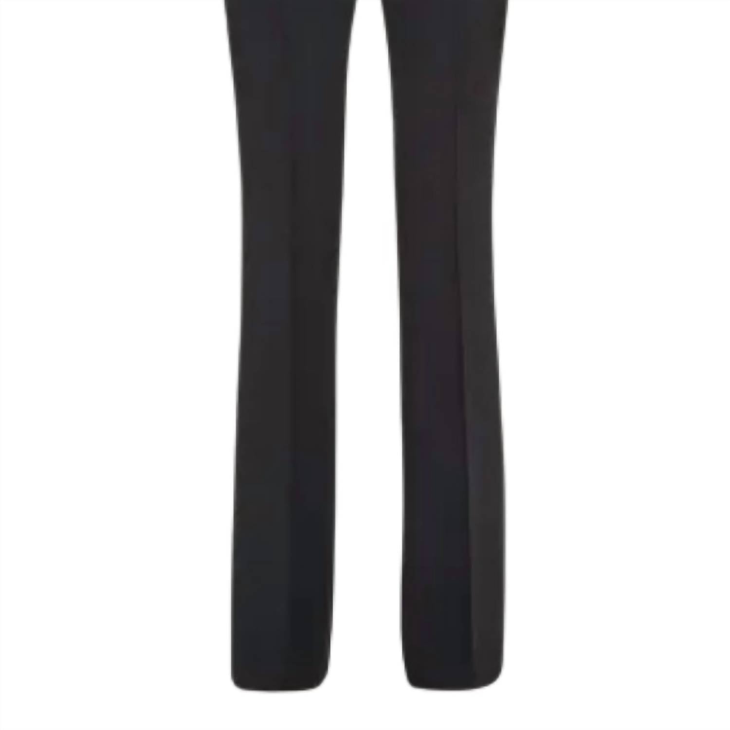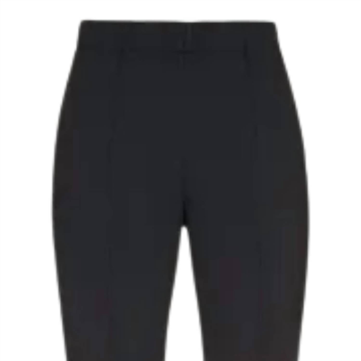 The Women's Flared Trouser Pants by Salvatore Ferragamo are a sophisticated addition to any wardrobe. These black trousers feature a high-rise waist and flared leg style, creating a modern and flattering silhouette. Crafted from a soft, stretchy fabric with ribbed stitching, they provide all-day comfort without compromising on style. Ideal for springtime workwear or a sleek New Year's Eve dinner party look, these pants are perfect for pairing with a sweater, silk shirt, or matching jacket.