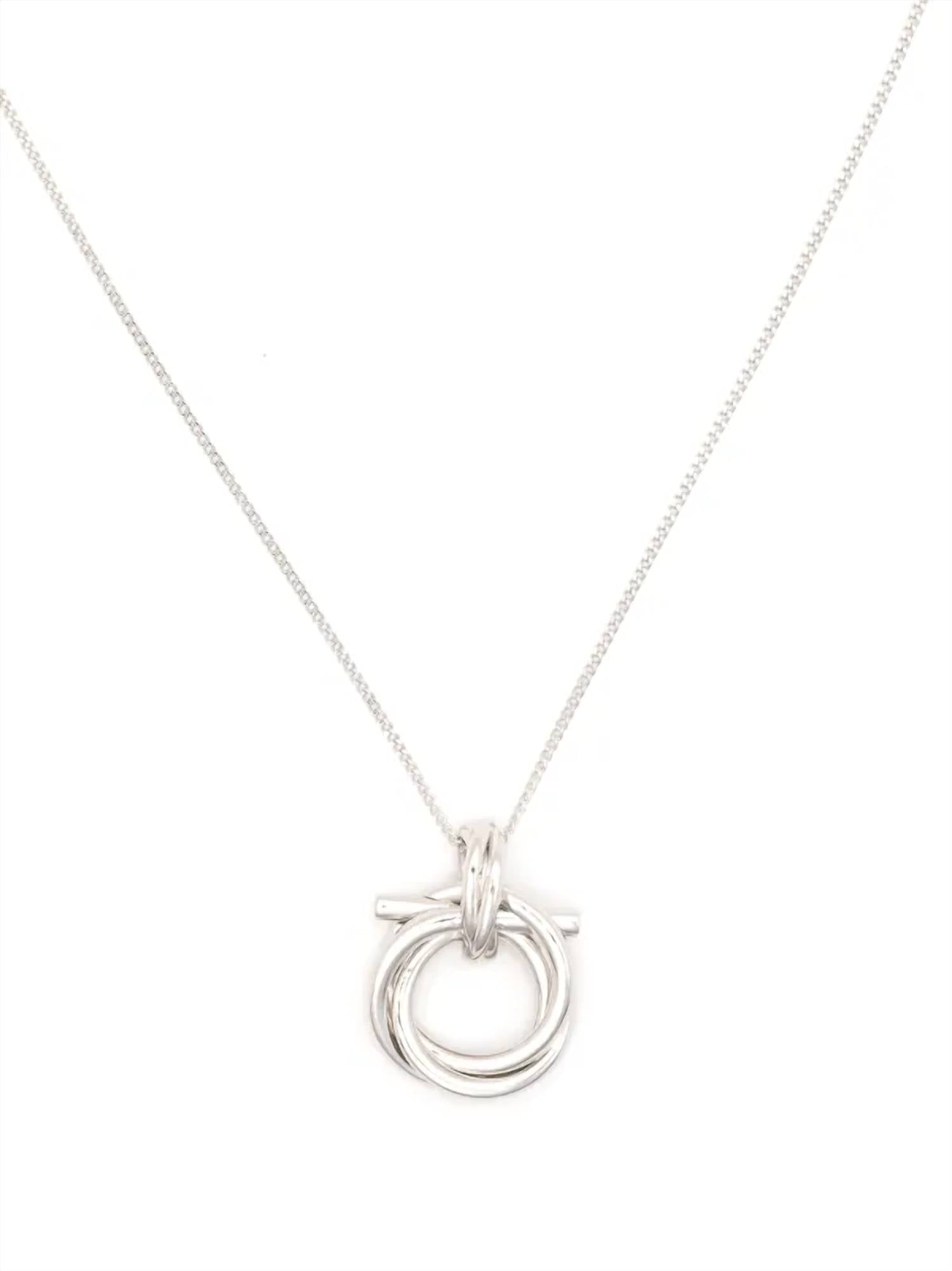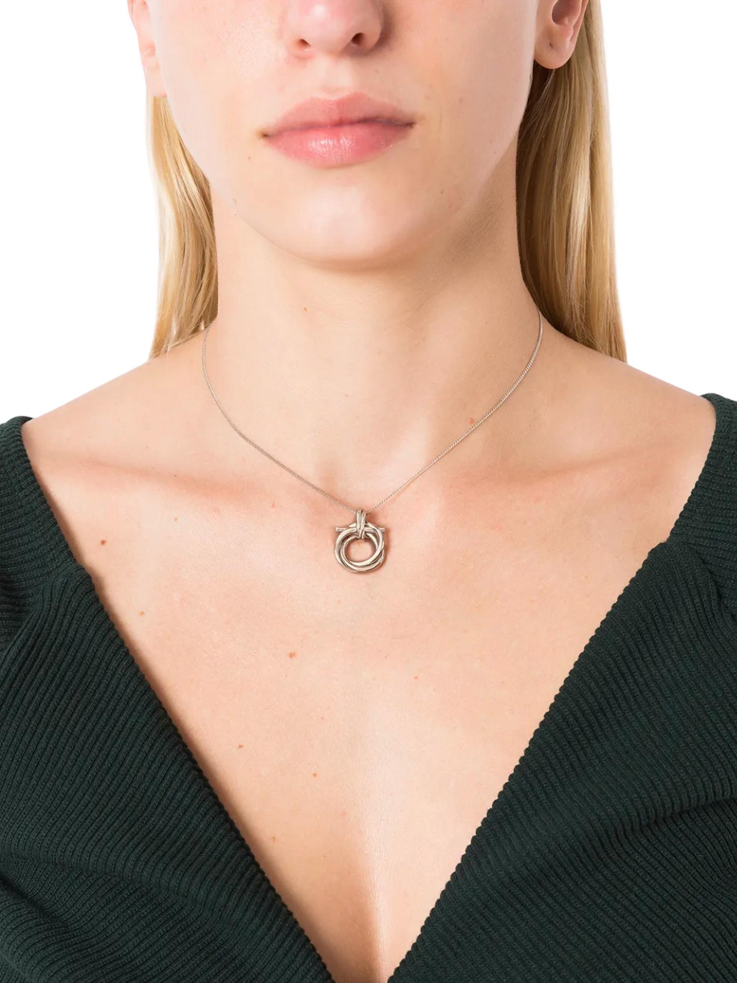 The perfect stand-out necklace that complements even the most basic t-shirt. The Women's Gancini Pendant Necklace by Salvatore Ferragamo is a sophisticated addition to any jewelry collection. This fine necklace features a stunning pendant crafted in silver plating, offering an elegant and timeless appeal. Country of Origin and gemstone details are unspecified, allowing its sleek design to shine. Perfect for adding a touch of luxury to any outfit.