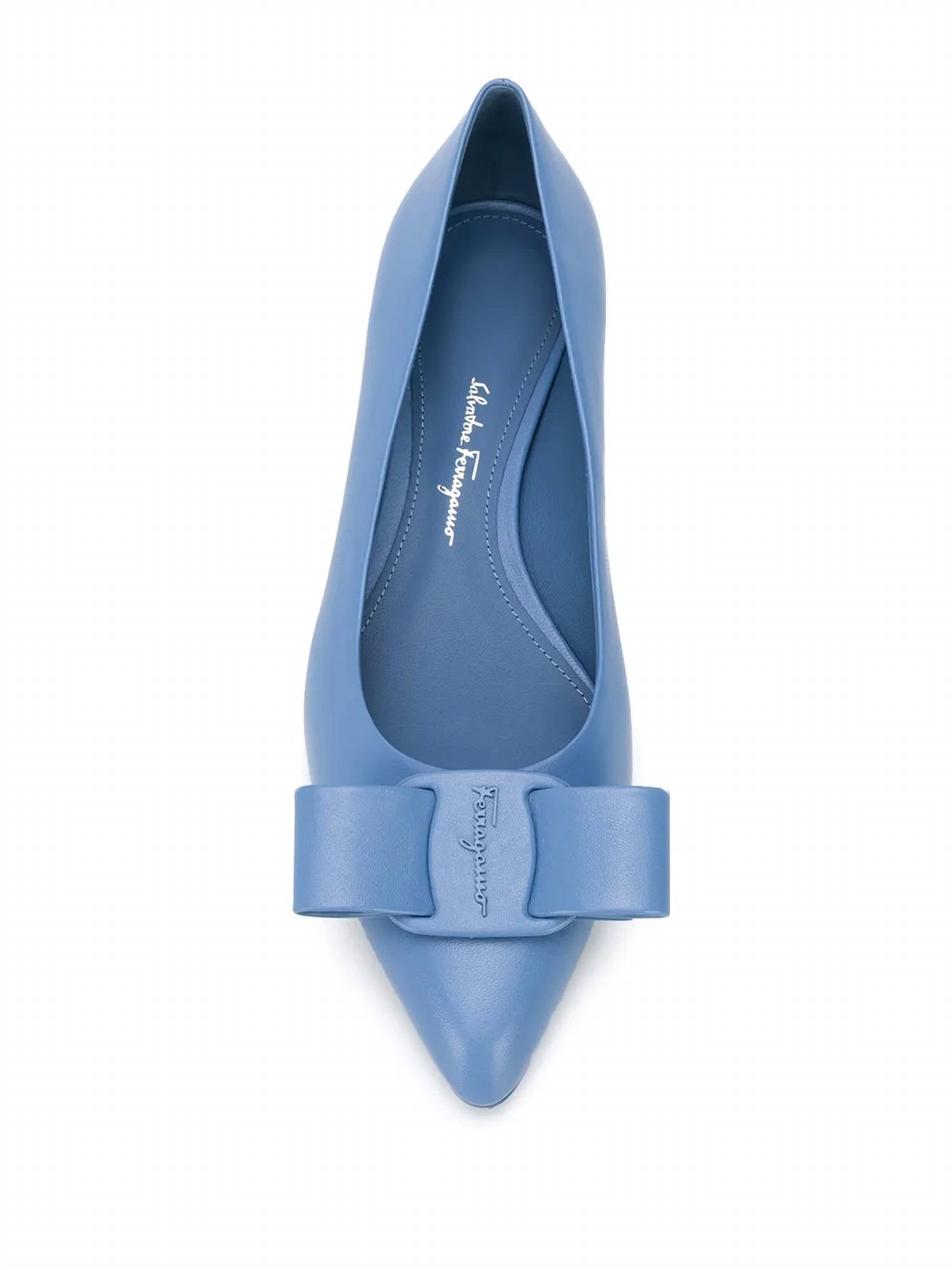 A preppy yet feminine take on the classic loafer. Step into elegance with the Women's Viva Ballerina Shoes by Salvatore Ferragamo, a refined choice for any dinner party or special occasion. Expertly crafted in Italy, these flats feature a chic pointed toe and the iconic Vara bow detail, complete with a logo plaque, embodying the "Quiet Luxury" trend. Fully composed of 100% calf leather for the outer, lining, and sole, these shoes promise unparalleled quality and comfort. Embracing a cornflower blue hue, they are the perfect flat heel choice for a sophisticated spring look.